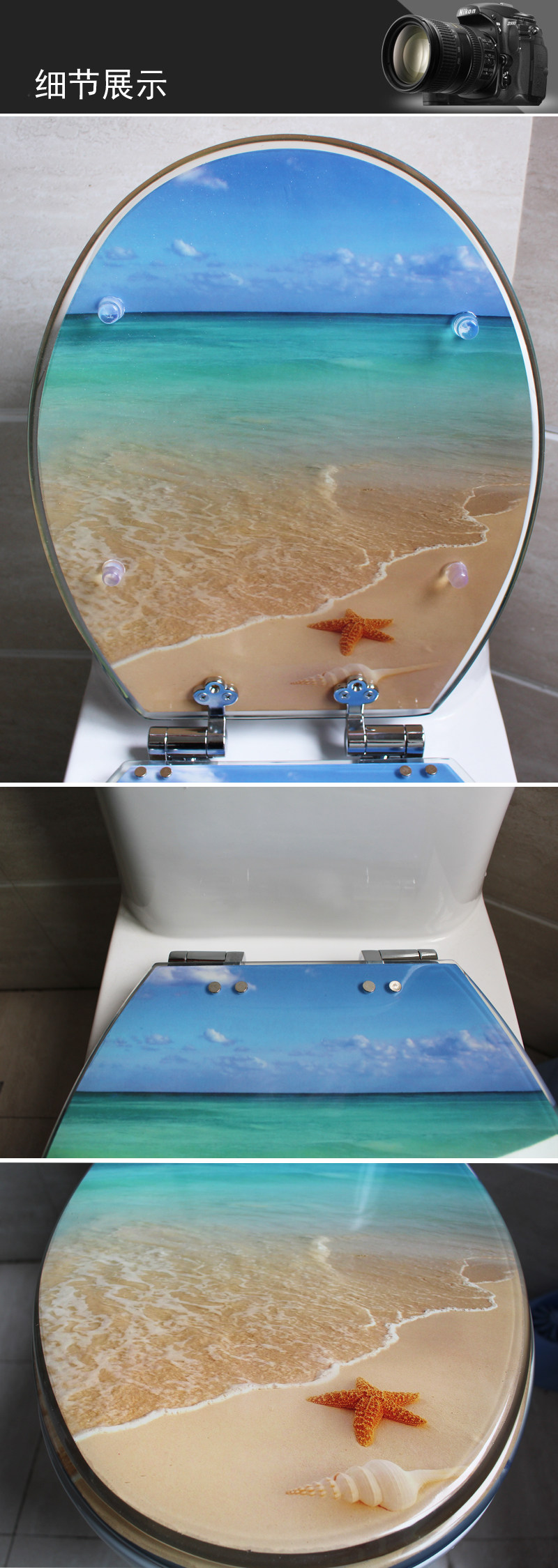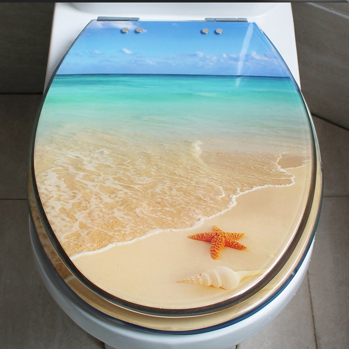 Прозрачный морской пляжный старомодный туалет, увеличенная толщина