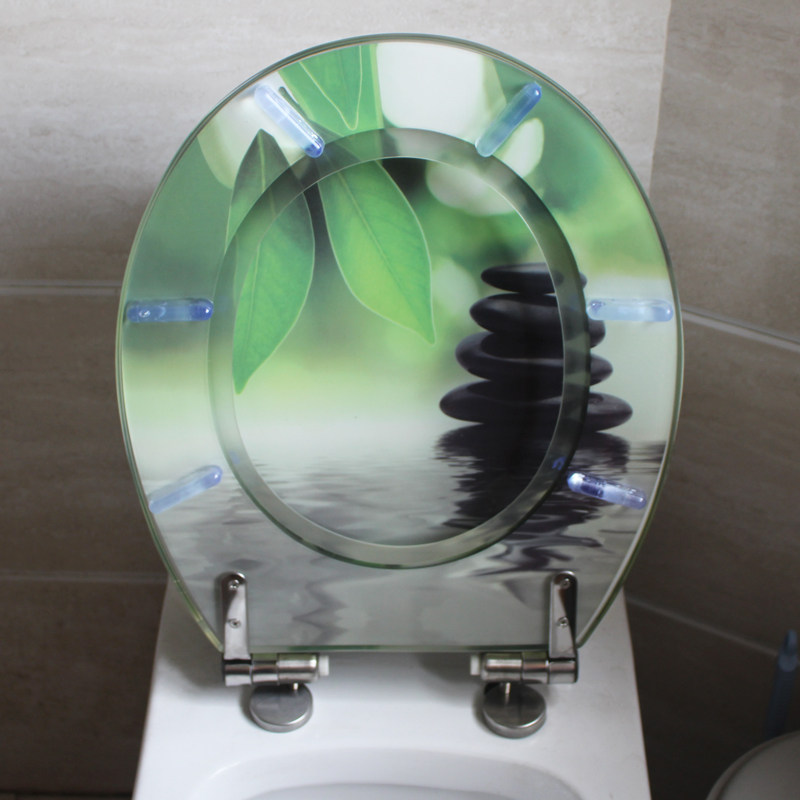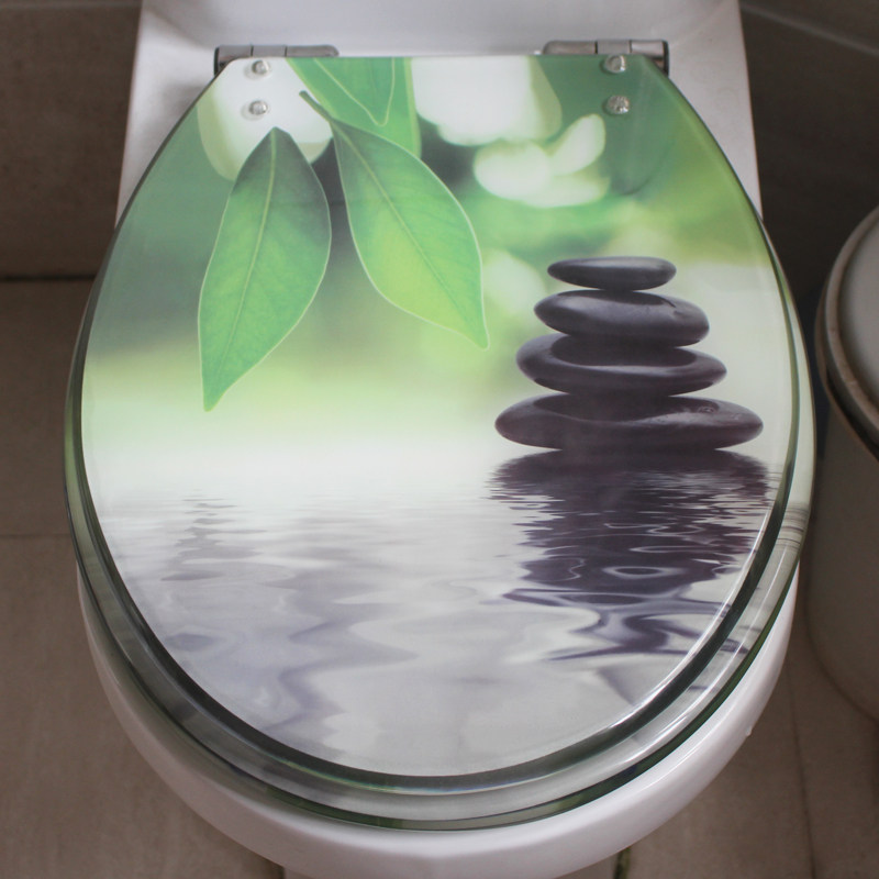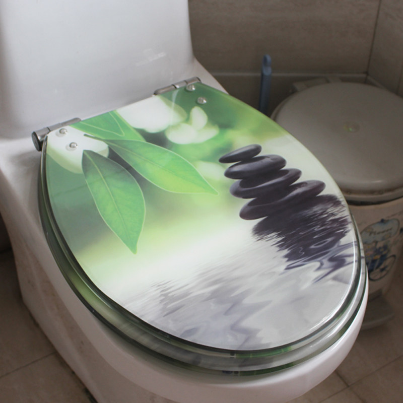 Сиденье для унитаза из смолы, старомодное, утолщенное, универсальное, с замедленной амортизацией, бесшумное, из твердой нержавеющей стали, волнистая картина с волнами воды