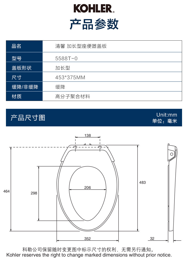 Крышка туалета Kohler, замедленная туалетная крышка, чистый ароматический агент K-5588 Сидящий туалетный крыш