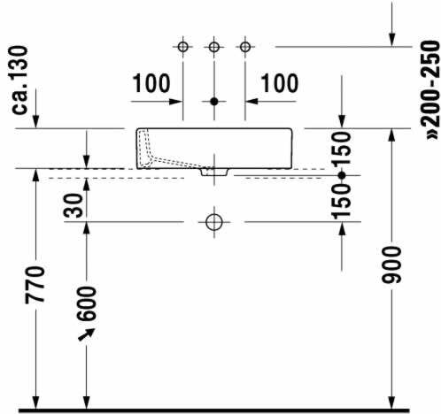 Шлифование чаши Vera, без переполнения, без таблицы монтажа смесителя, аксессуары, 500 мм