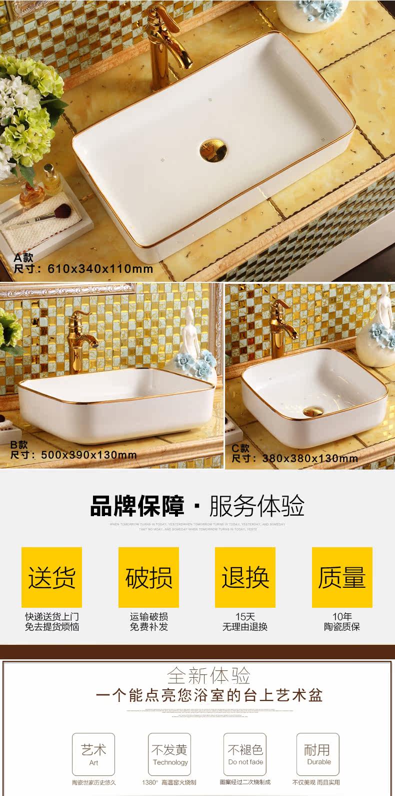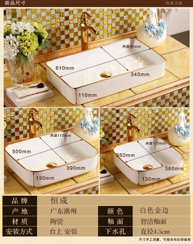 Европейский квадратный квадратный квадратный квадратный горшок с керамическим очищающим лицом лица туалет туалет домашний мытье рука бассейн золото