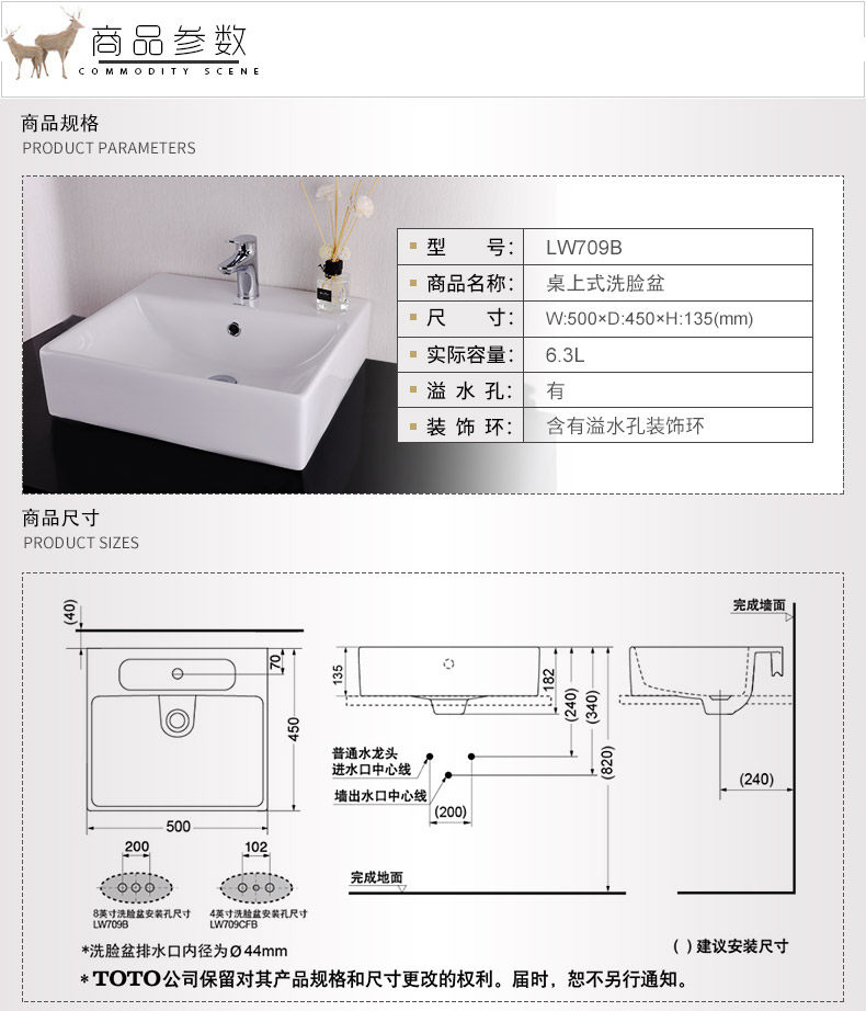 TOTO Квадратный квадратный квадрат -Washbasin LW709 Anty -Dirt -Desktop Wash Basin Basin Basin Casin Basin (07)