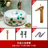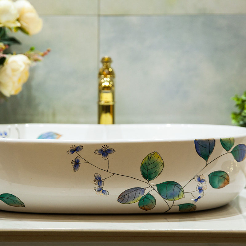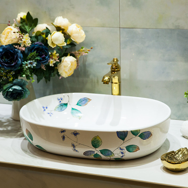 琅格齐 Бассейн на ванной на ванной, керамическая ванна, туалет для мытья, мытья бассейн, зеленые листья с ручным