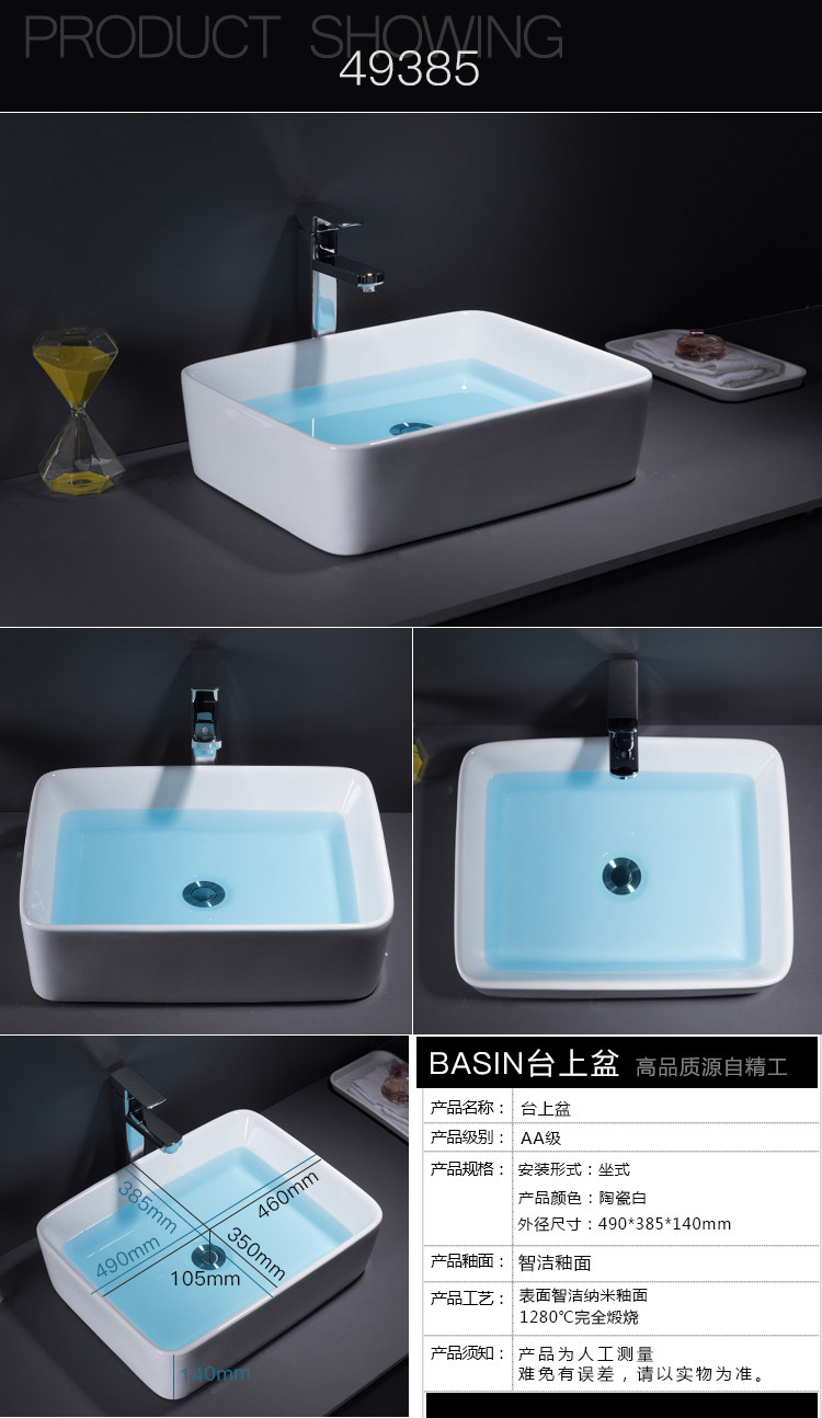 Гигиенический керамический квадратный таз для домашнего использования для умывания