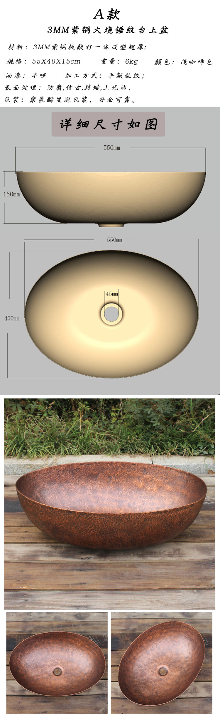 - Медный, 55x, 40x, 15см