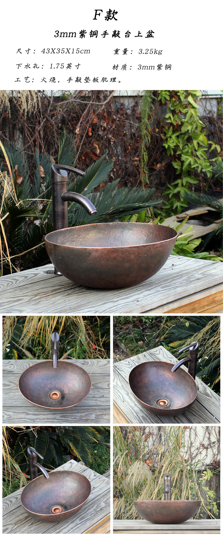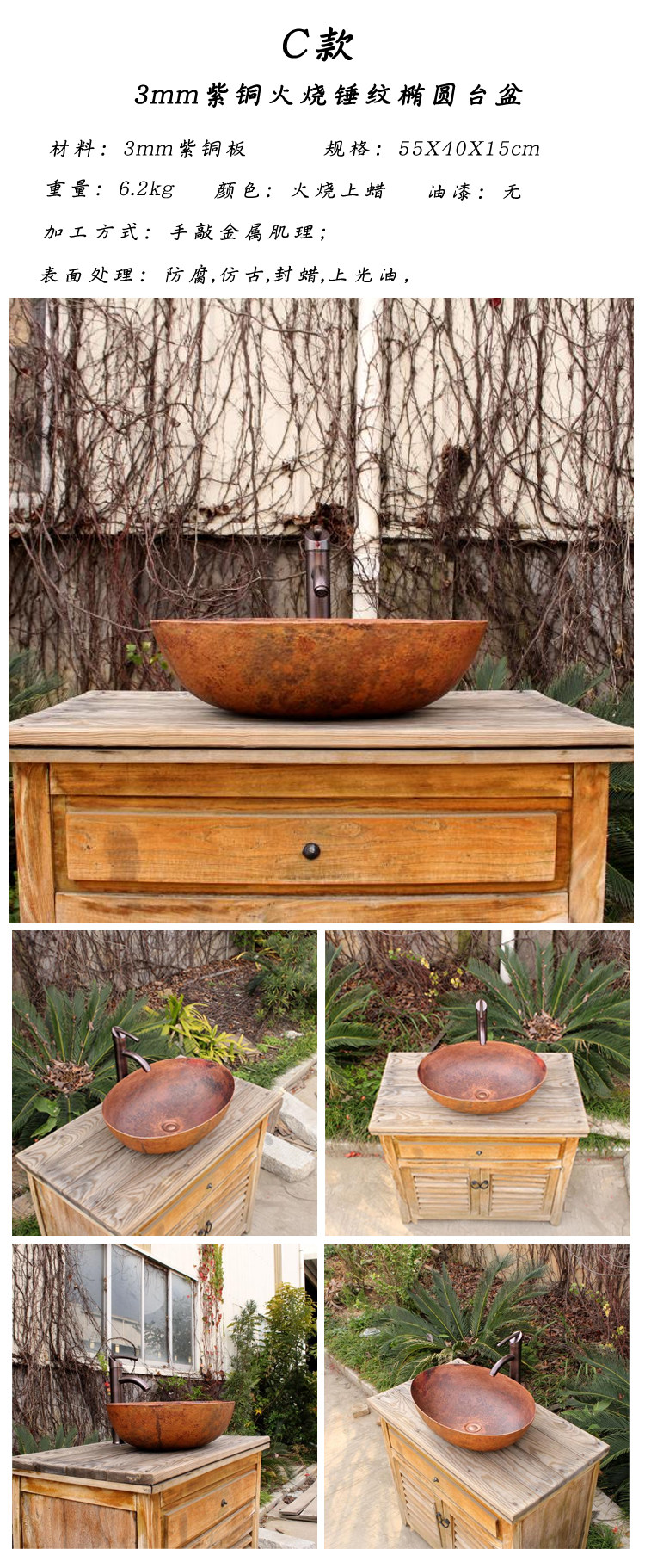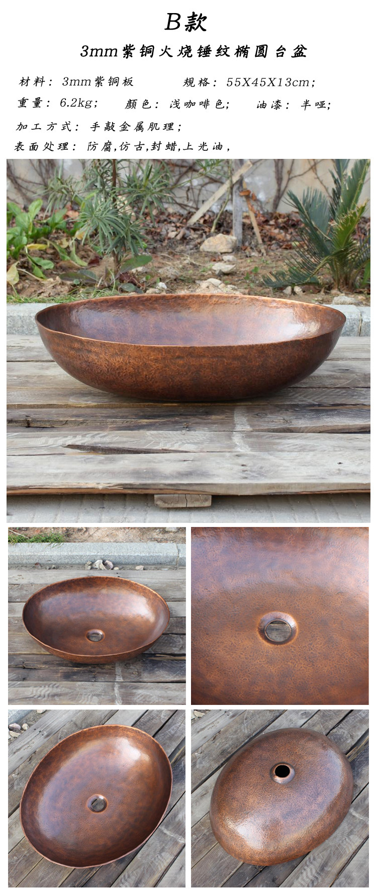 Индивидуальная медная ласточка Хаус Американский ретро -эллипс Пот творческий