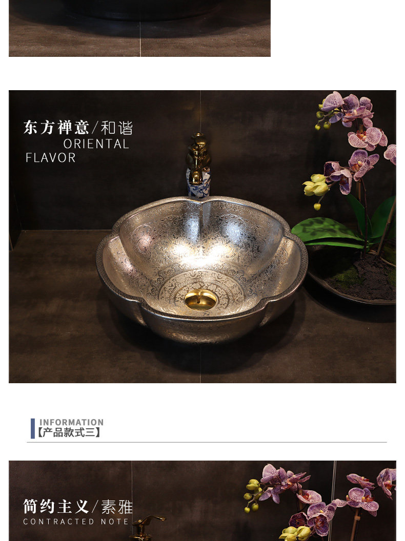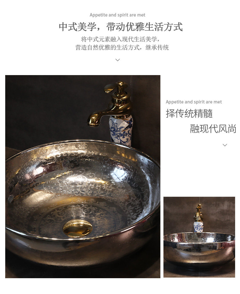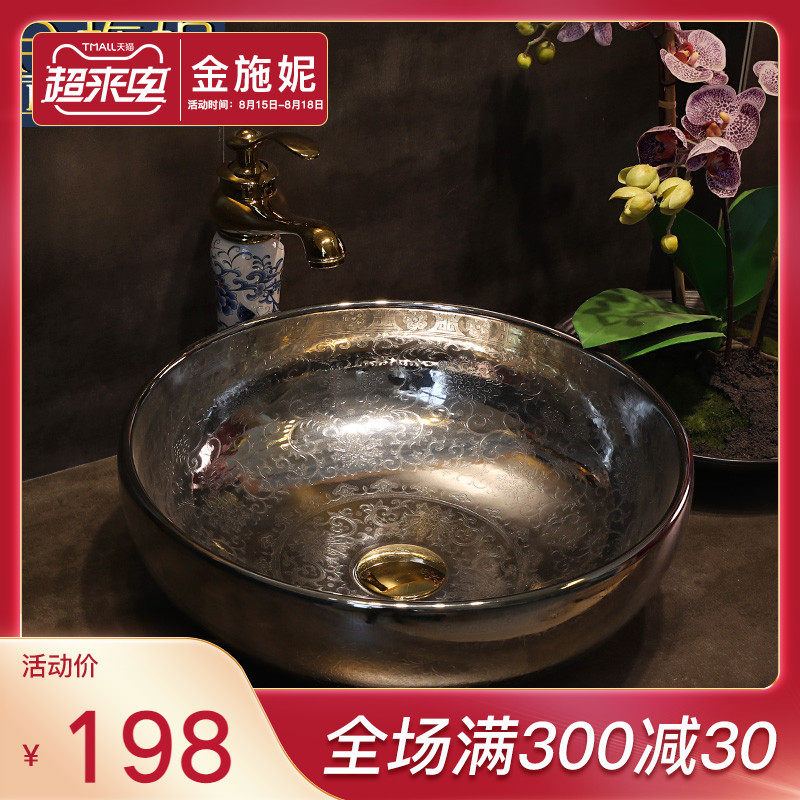 金施妮 Китайский стиль золотого и серебряного горшка Керамический лицевой бассейн отель туалетные столы на бассейне для мытья горшка бассейна