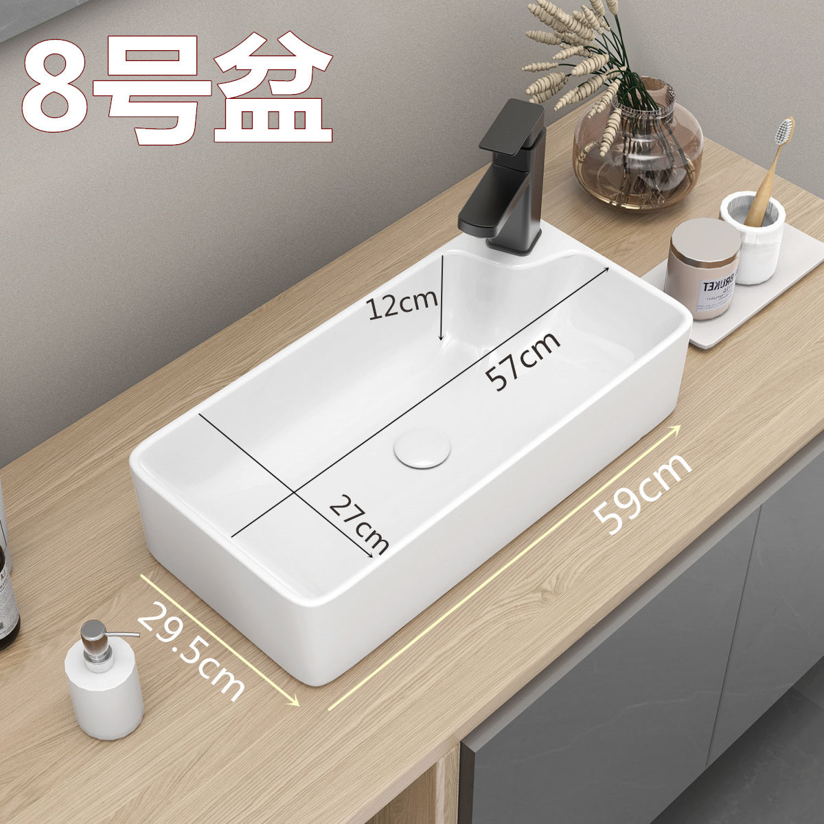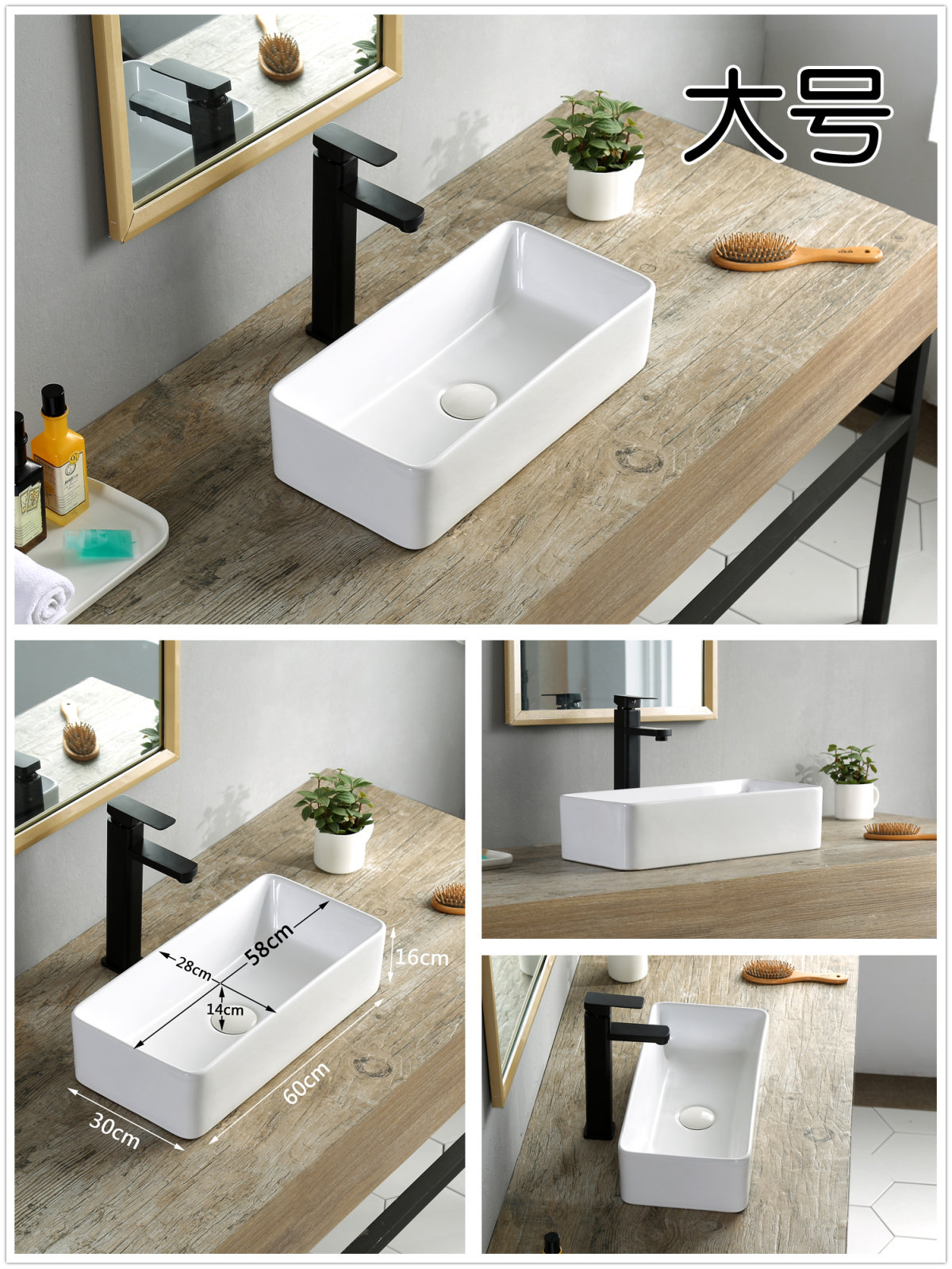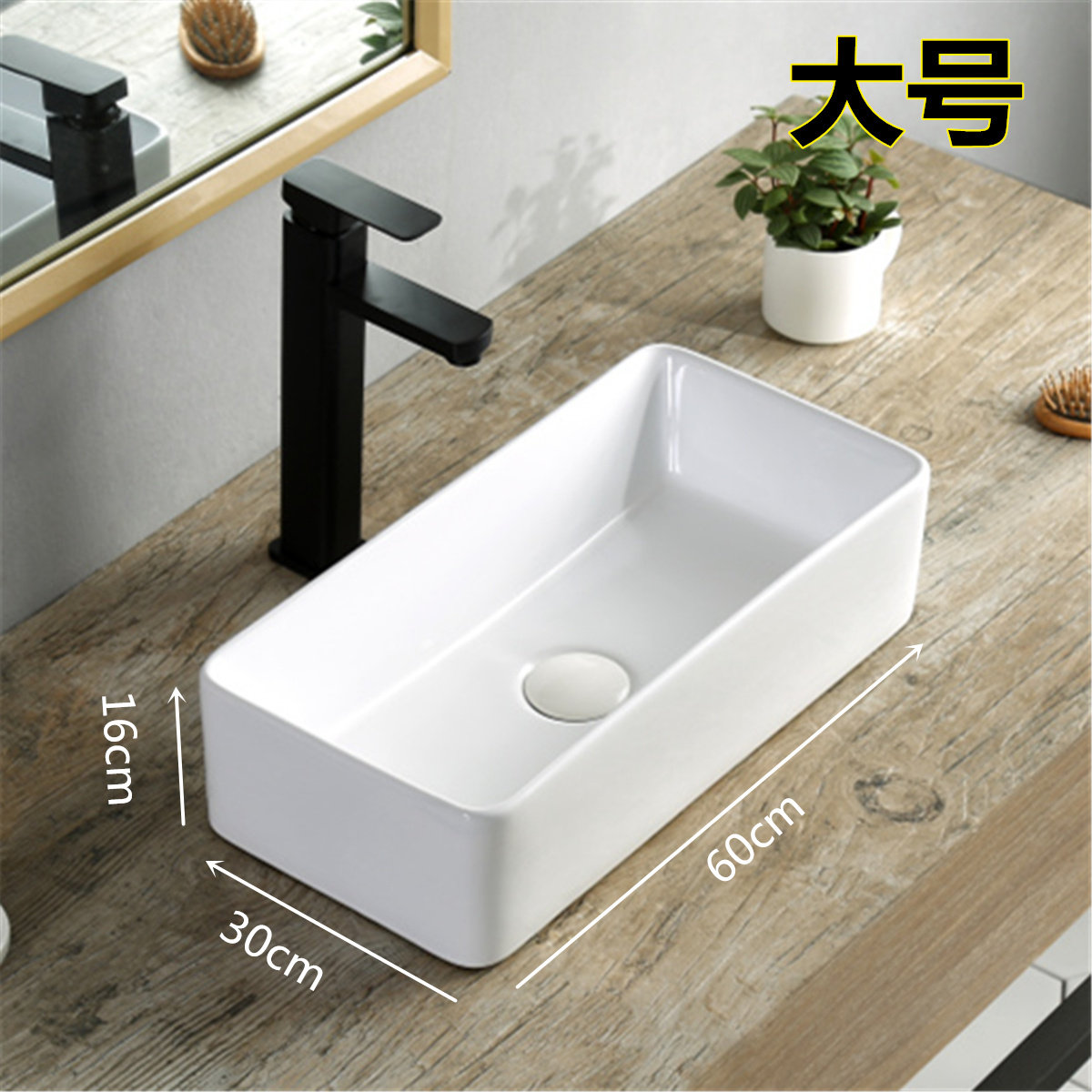 Маленький гигиенический квадратный керамический таз, 60×30см
