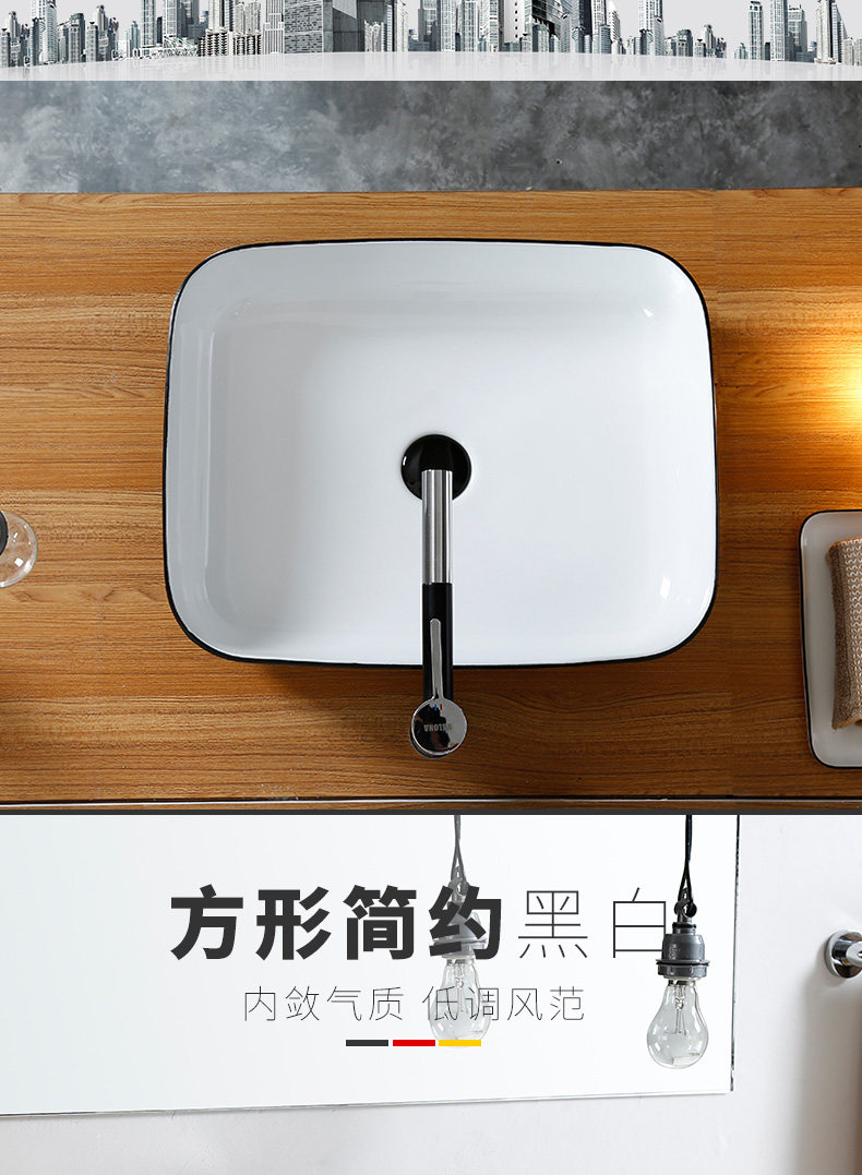 Керамическая ванная комната Carona Wash Basin использует in in in int ret retro rectangle, большая простая индивидуальность черная