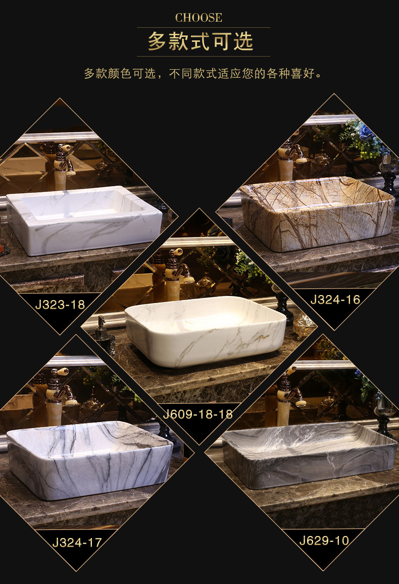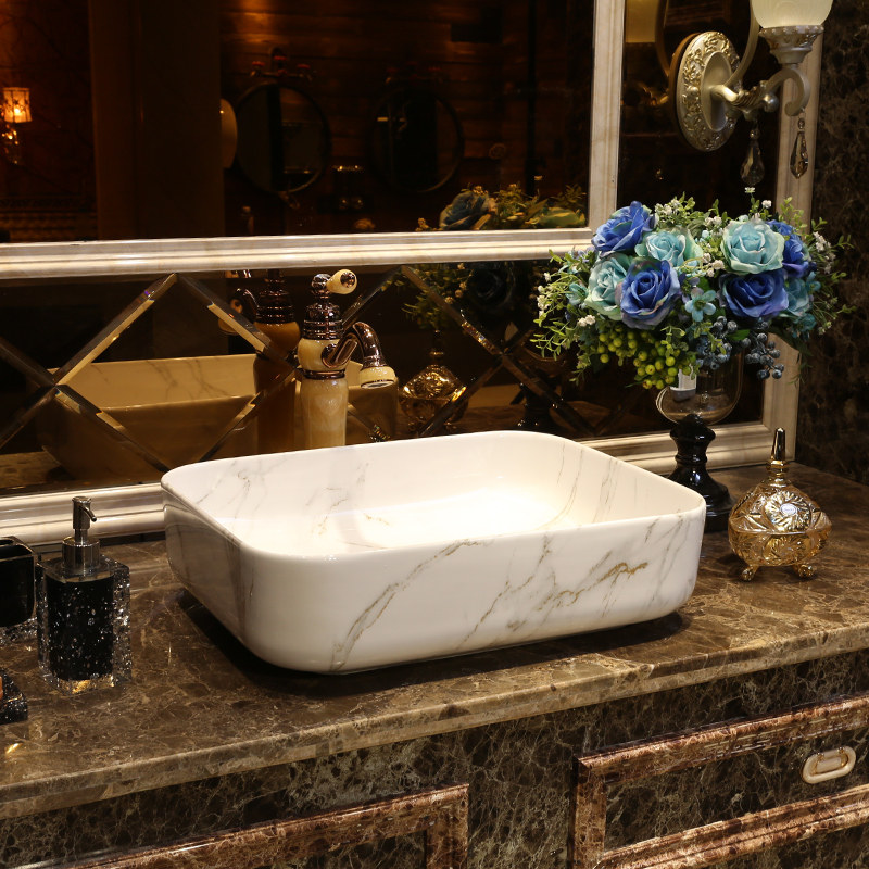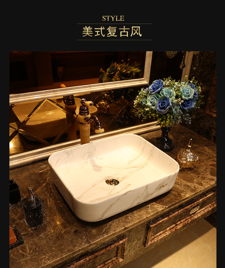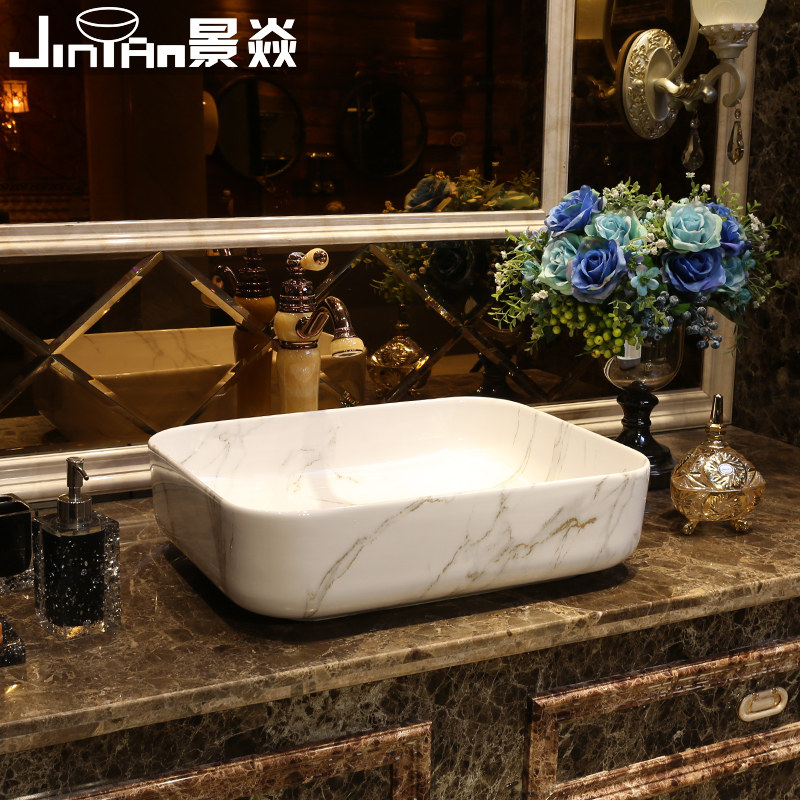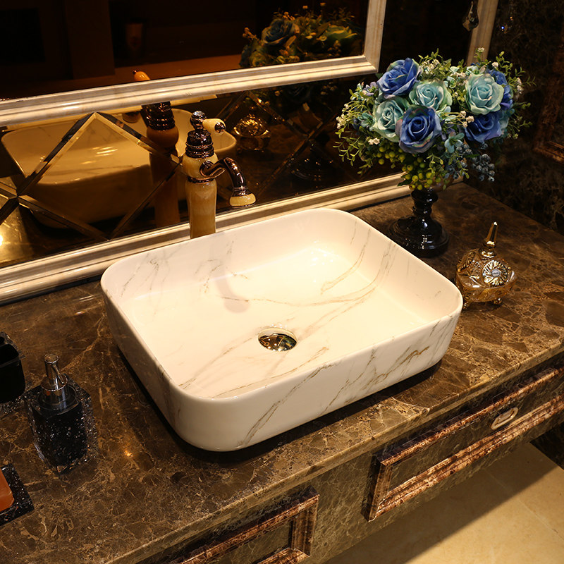 景焱 Мраморный прямоугольный керамический гигиенический таз для домашнего использования, в американском стиле