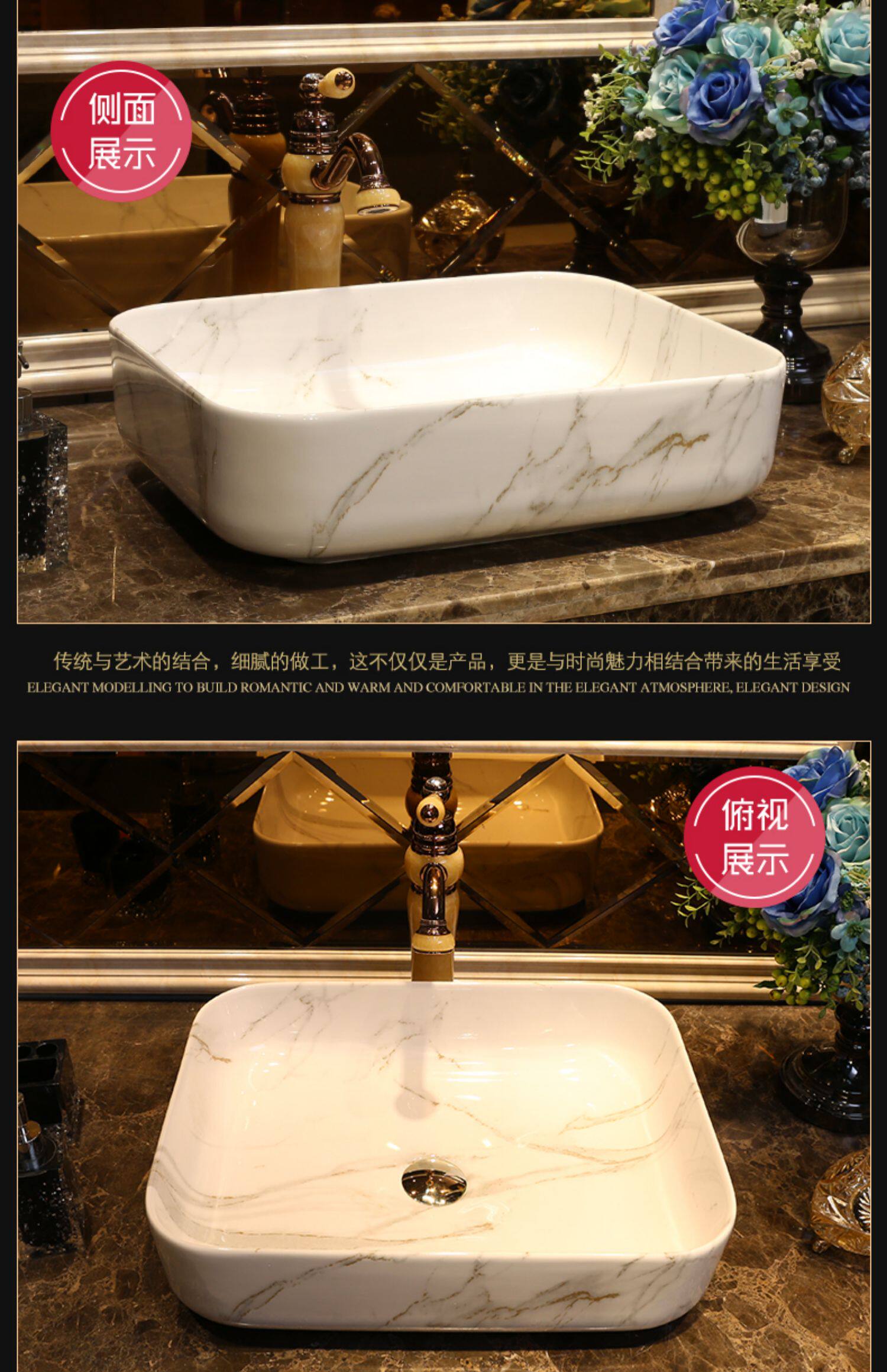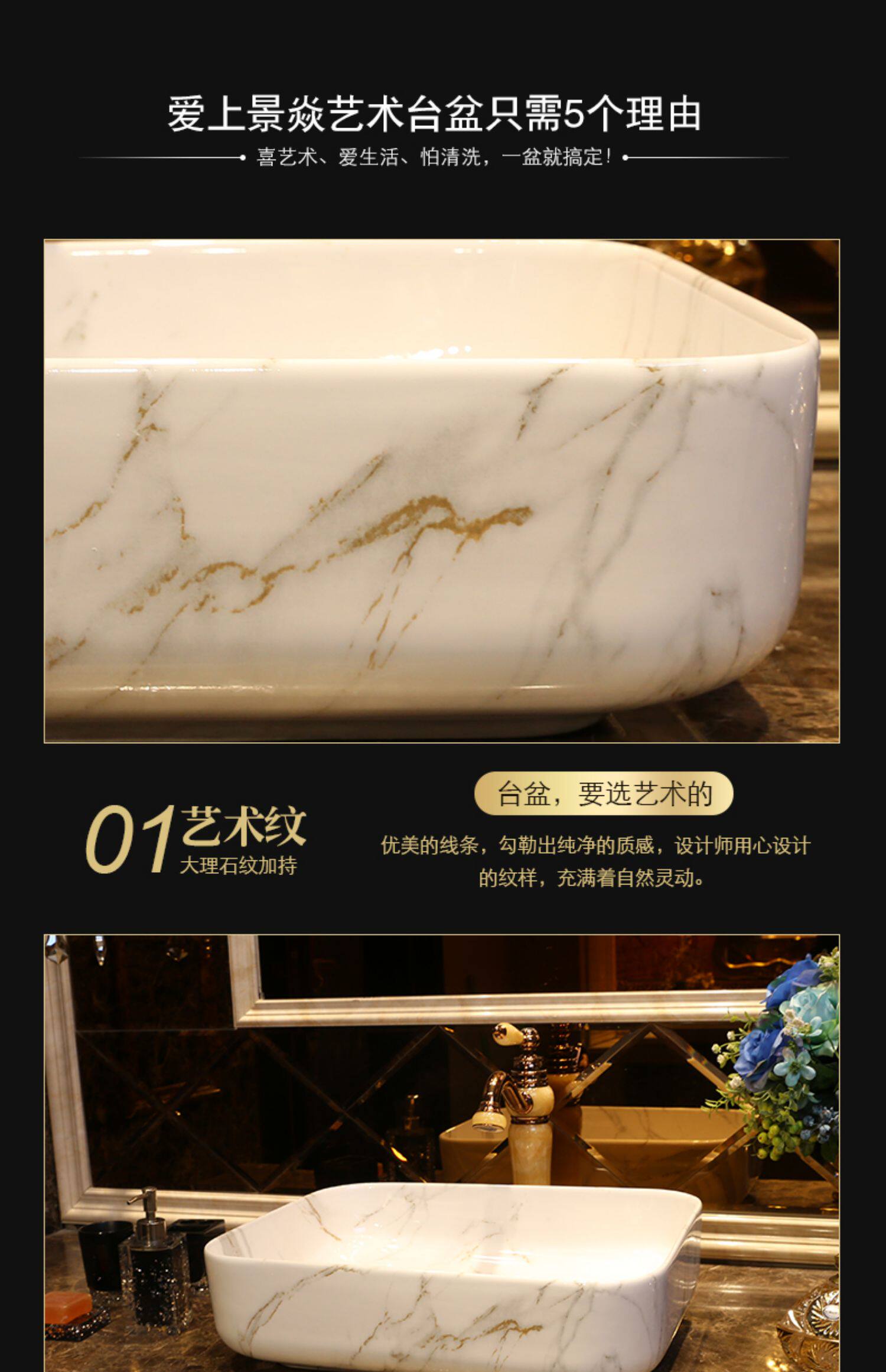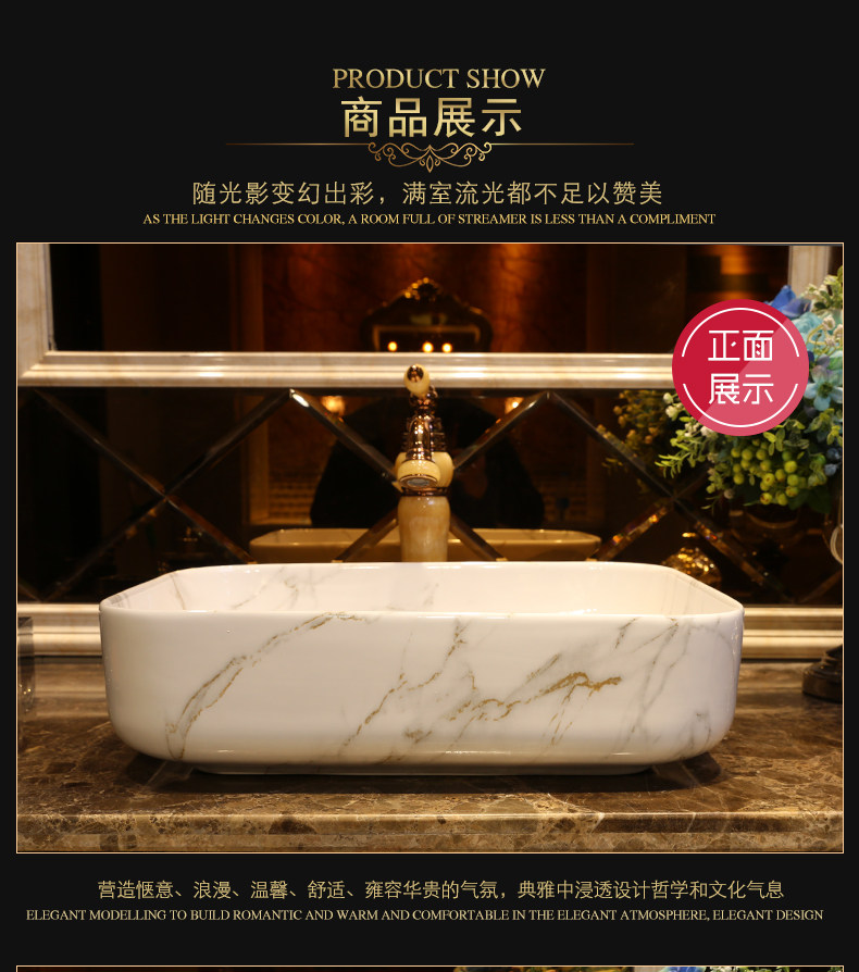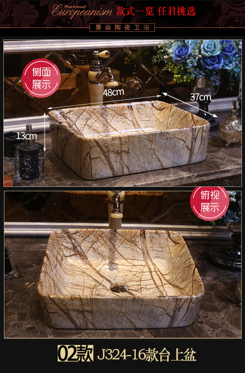 景焱 Мраморный прямоугольный керамический гигиенический таз для домашнего использования, в американском стиле