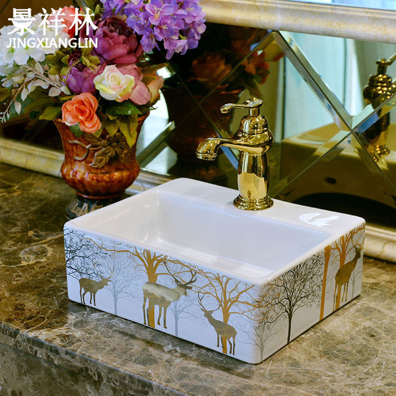 Американский туалетный художественный бассейн на керамической платформе на керамической платформе, чтобы вымыть бассейн небольшой бассейн ретро бассейн в ванной комнате