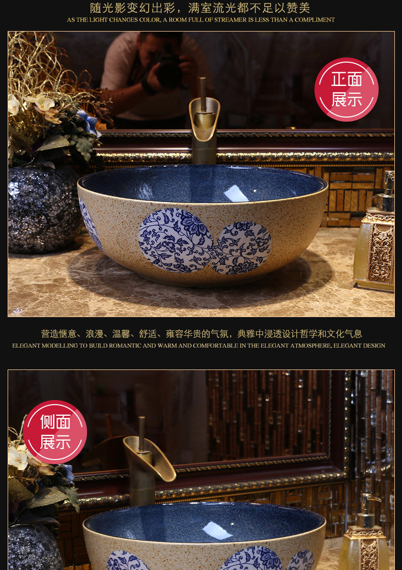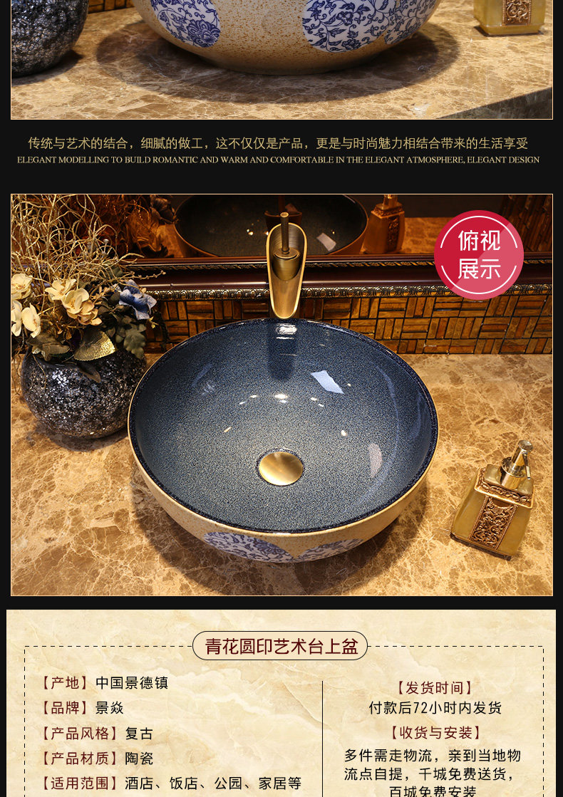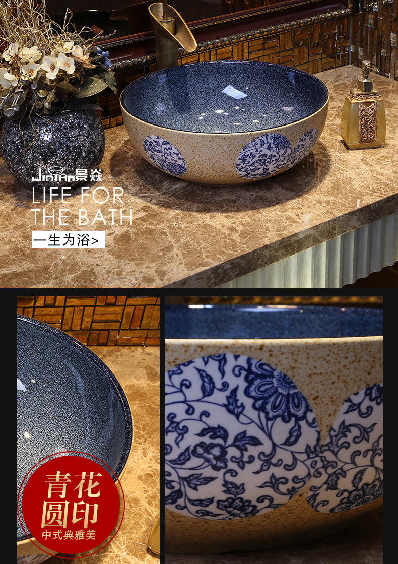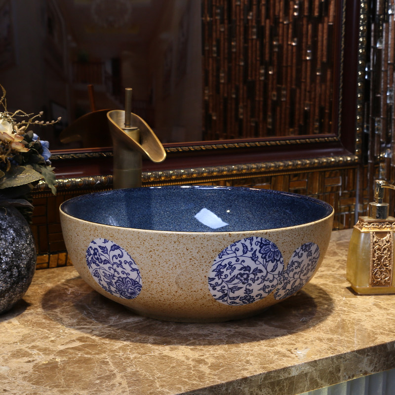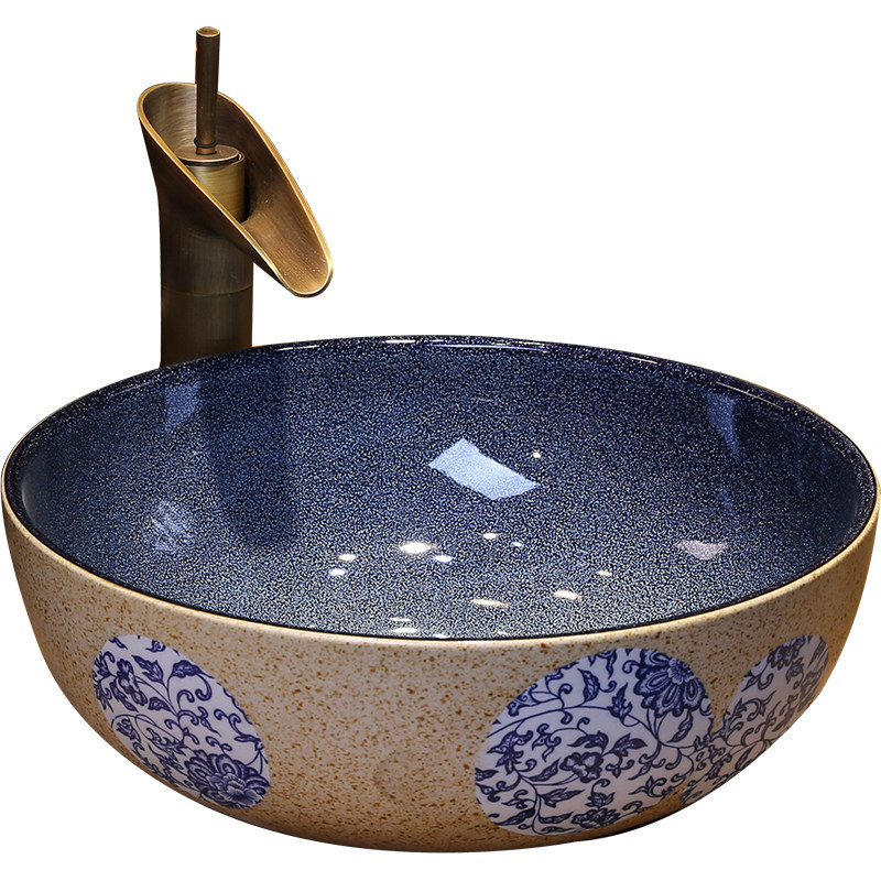 Сине-белый маленький керамический гигиенический таз, 30см
