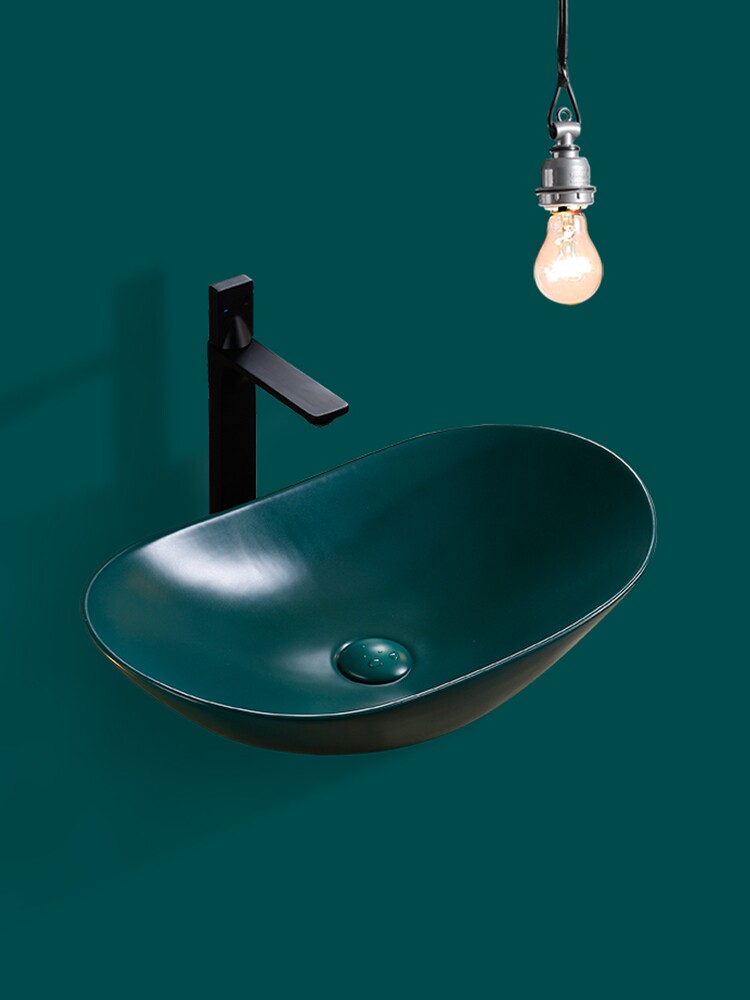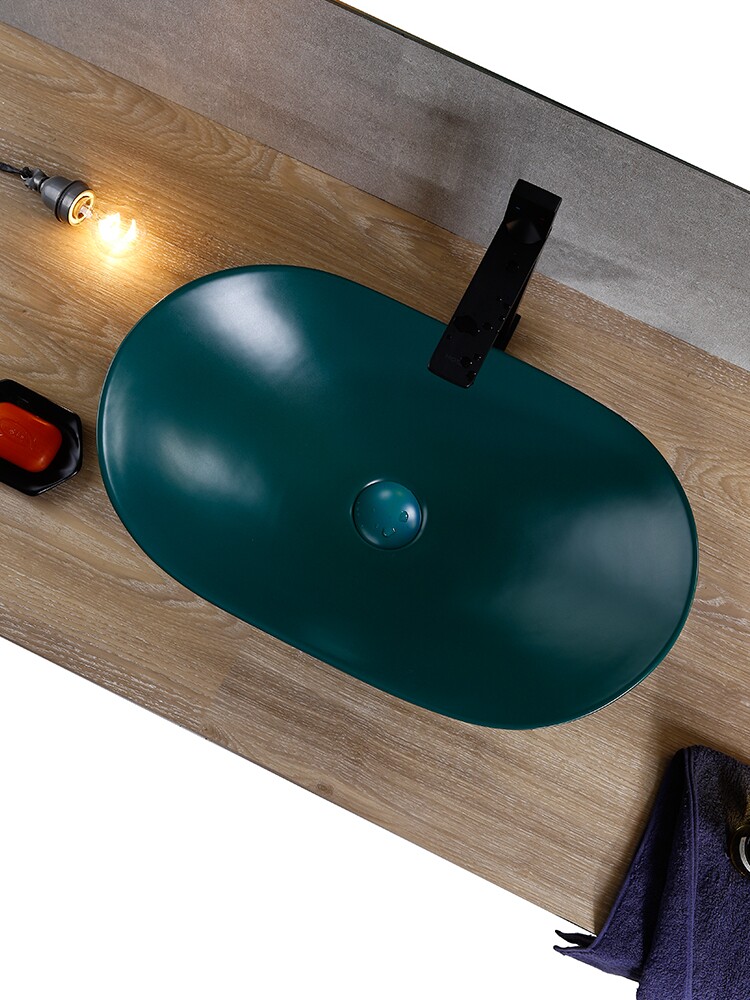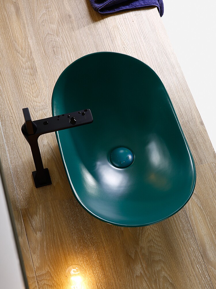 Зеленый матовый керамический гигиенический таз для домашнего использования для стирки
