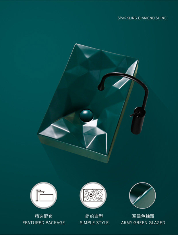 Оригинальный зеленый матовый керамический гигиенический таз