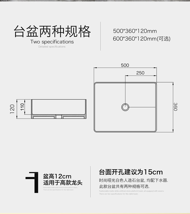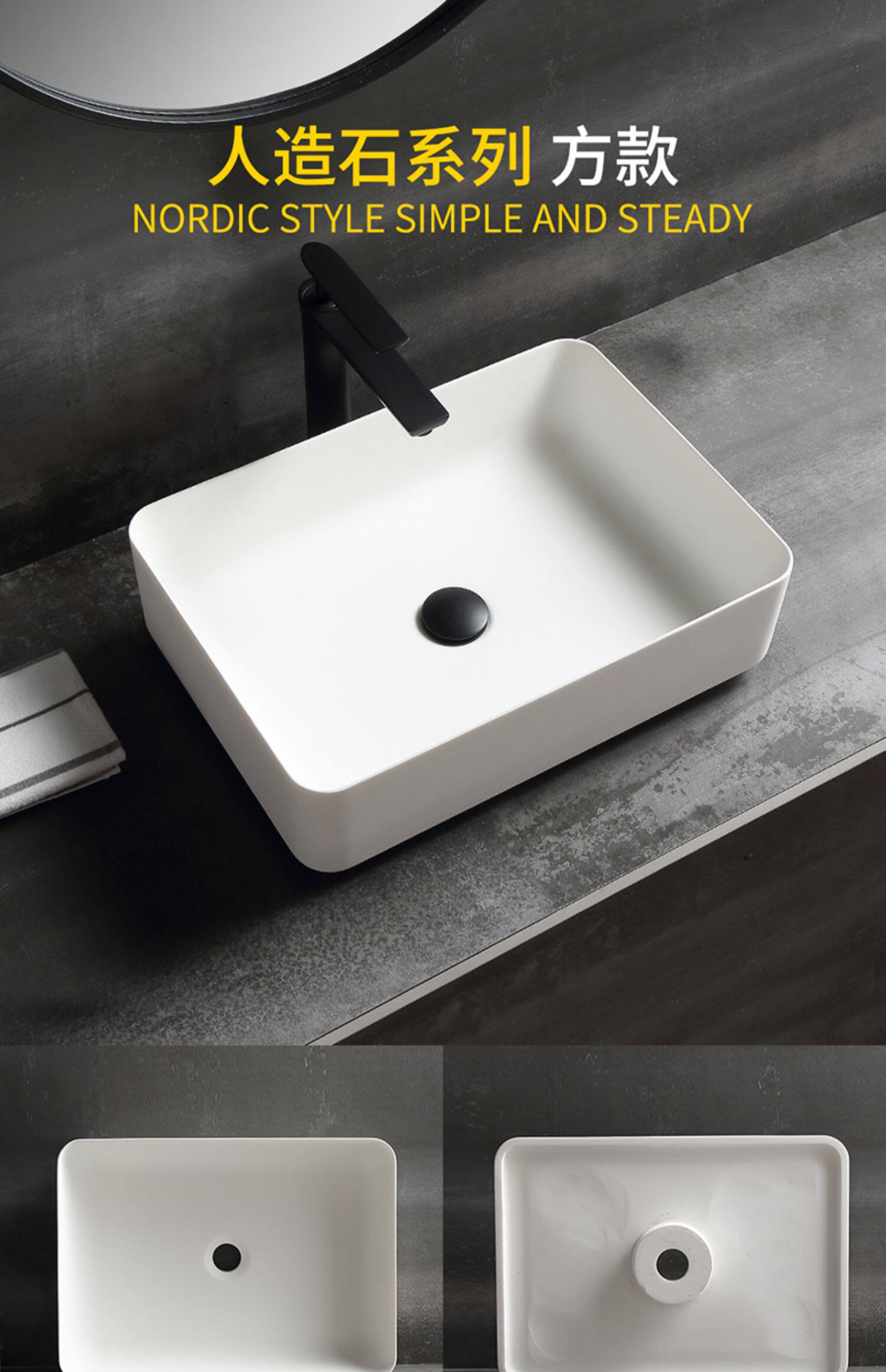 Новая платформа для домашних товаров Du La Laine Artificial Stone на туалетной ванне Basin Washbasin, в северном европейском стиле.