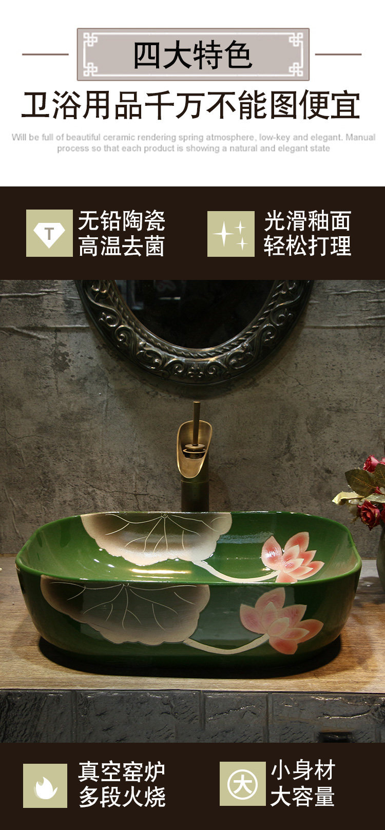 Green Lotus Ceramic Basin Pot маленький маленький размер новые китайские символы на художественном стирке Pot Creative Home