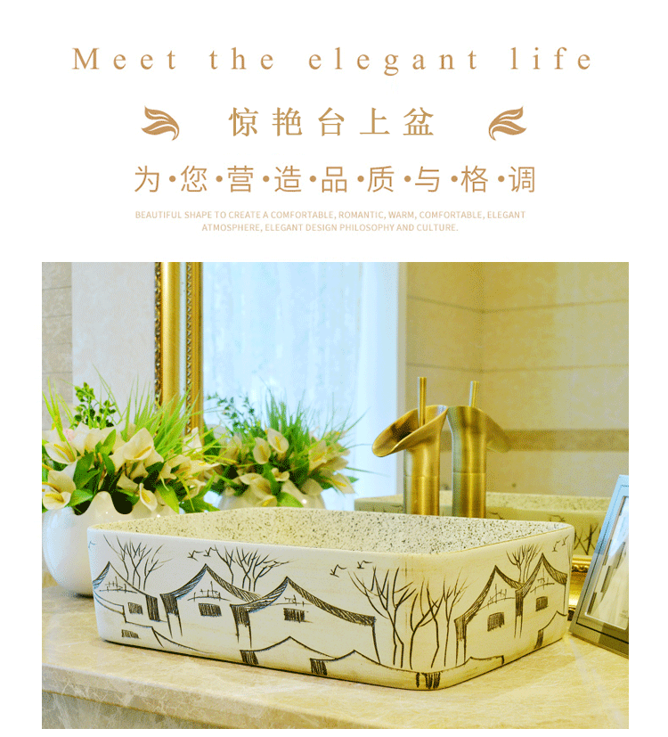 Квадратный гигиенический керамический маленький таз для домашнего использования