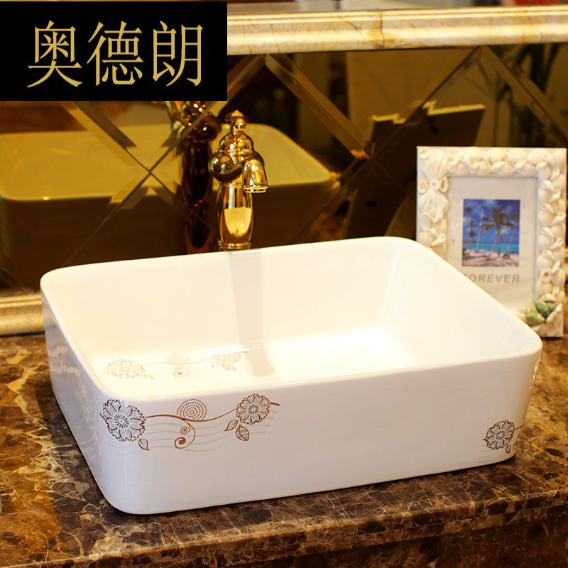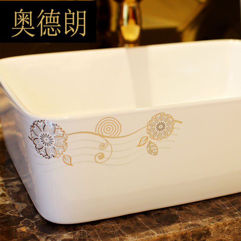 奥德朗 Столешница, квадратная раковина, керамическая раковина для ванной, художественная раковина, увеличенный золотой музыкальный цветок LGQ