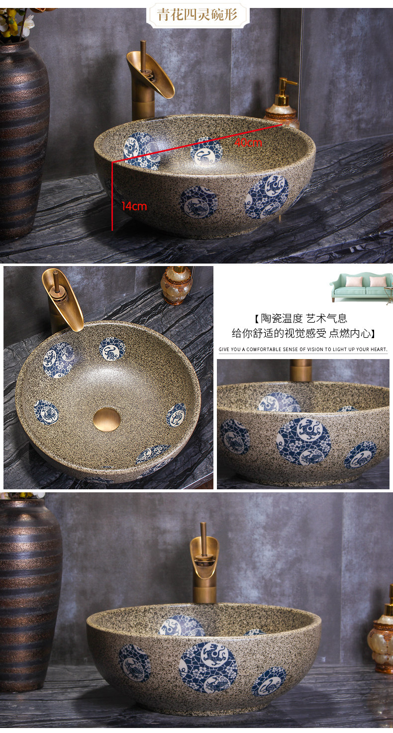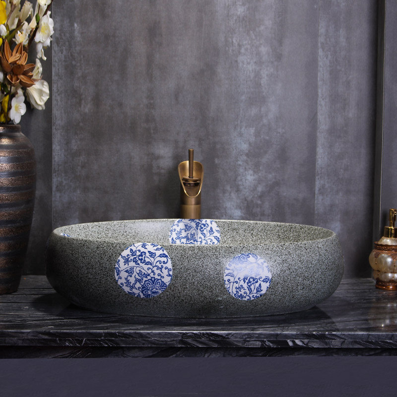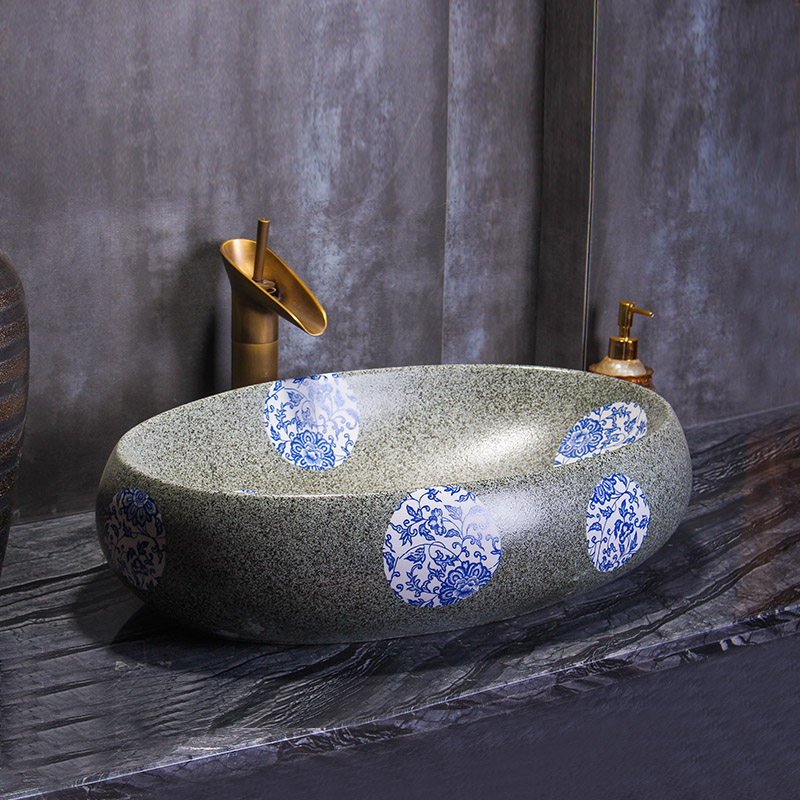 Антикварный сине-белый керамический гигиенический большой таз для домашнего использования