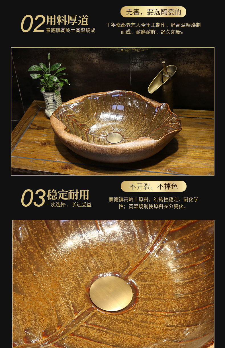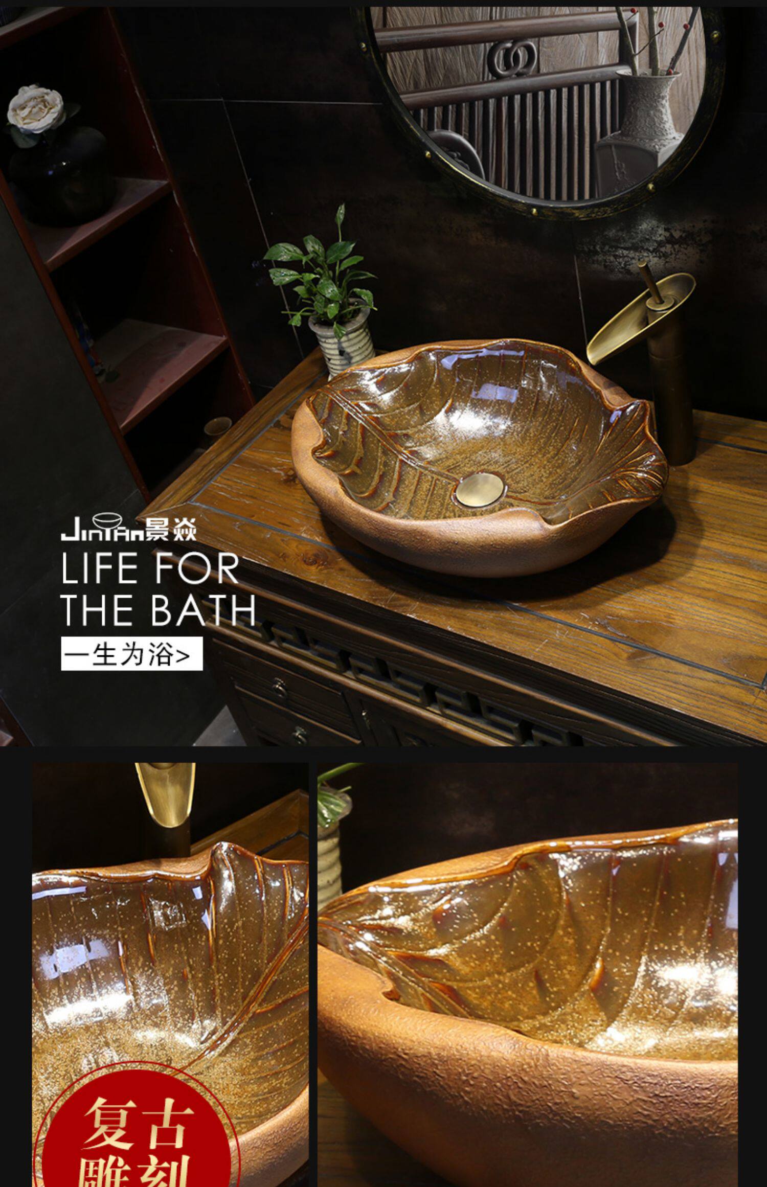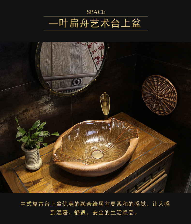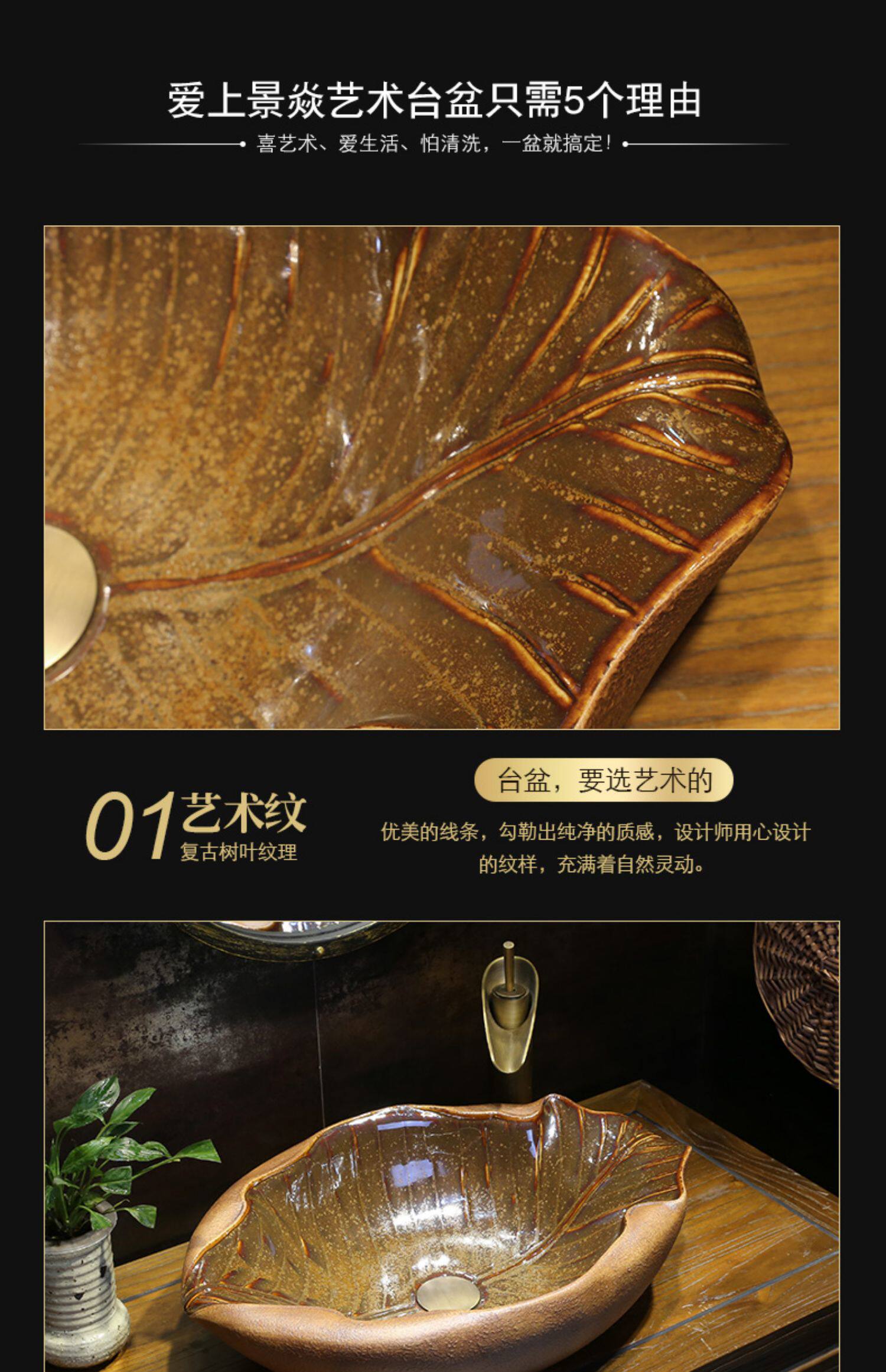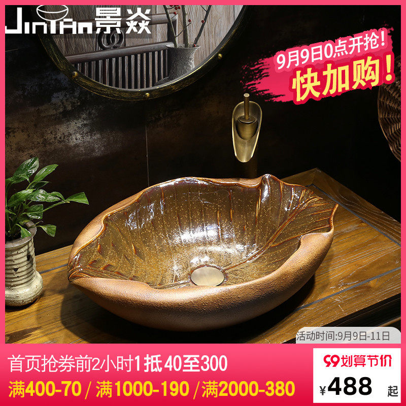 景焱 Один -листья плоская лодка инопланетная арт -платформа на горшке творческого ретро -керамического мытья басин китайская антикварная рука бассейн