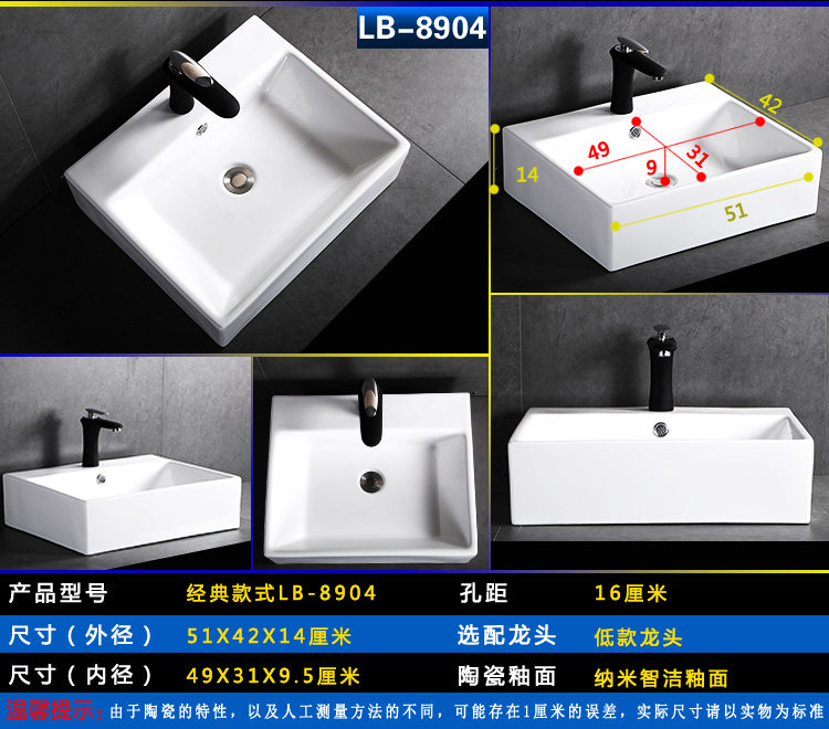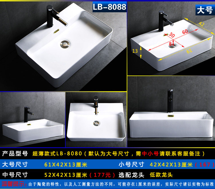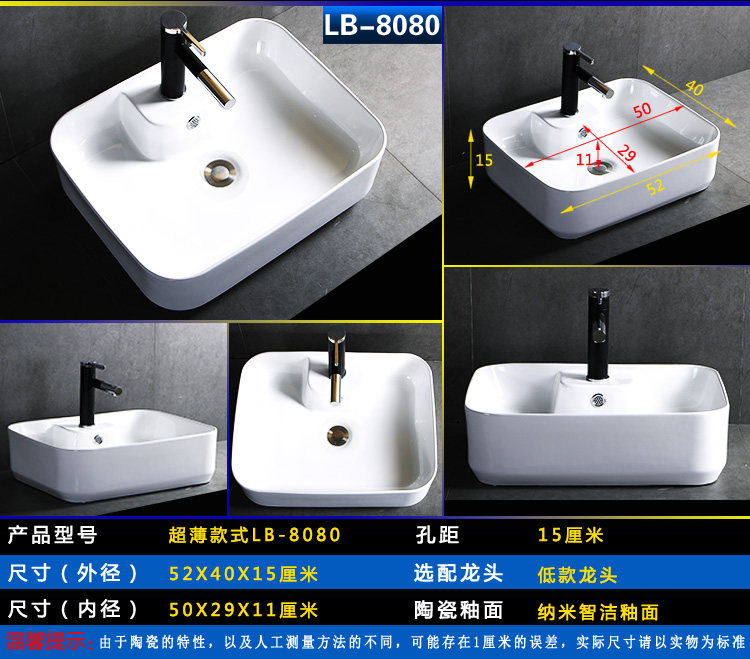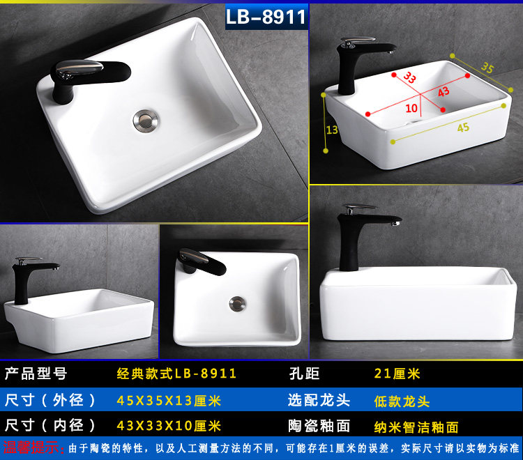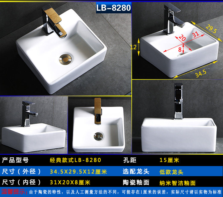 Квадратный гигиенический керамический маленький таз для домашнего использования