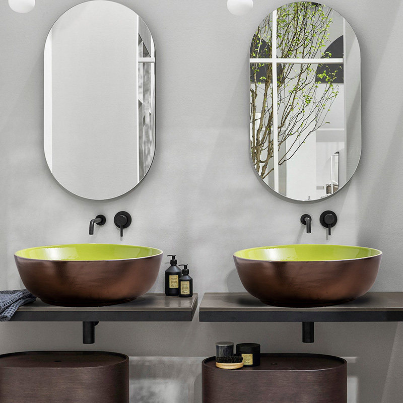 Внутренняя нежная зеленая внешняя золотая платформа маленькая ручная молятельная бассейн для ванной комнаты ванная комната Washbasin Homeving круглый художественный творческий подход