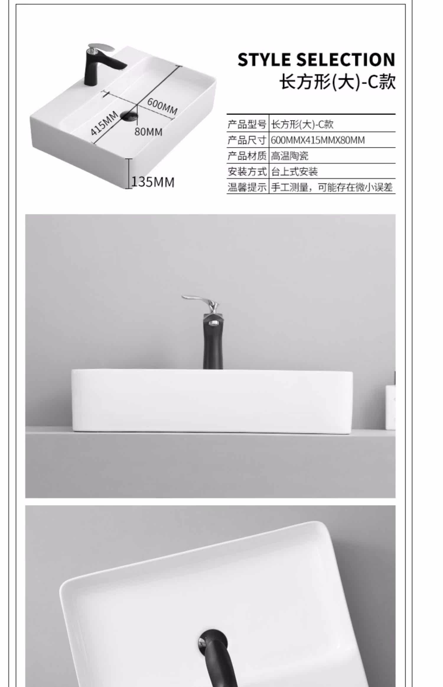 莎沃嘉 Прямоугольный ультратонкий керамический гигиенический таз