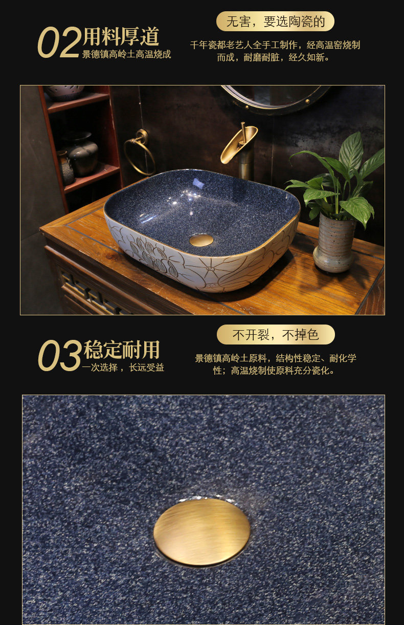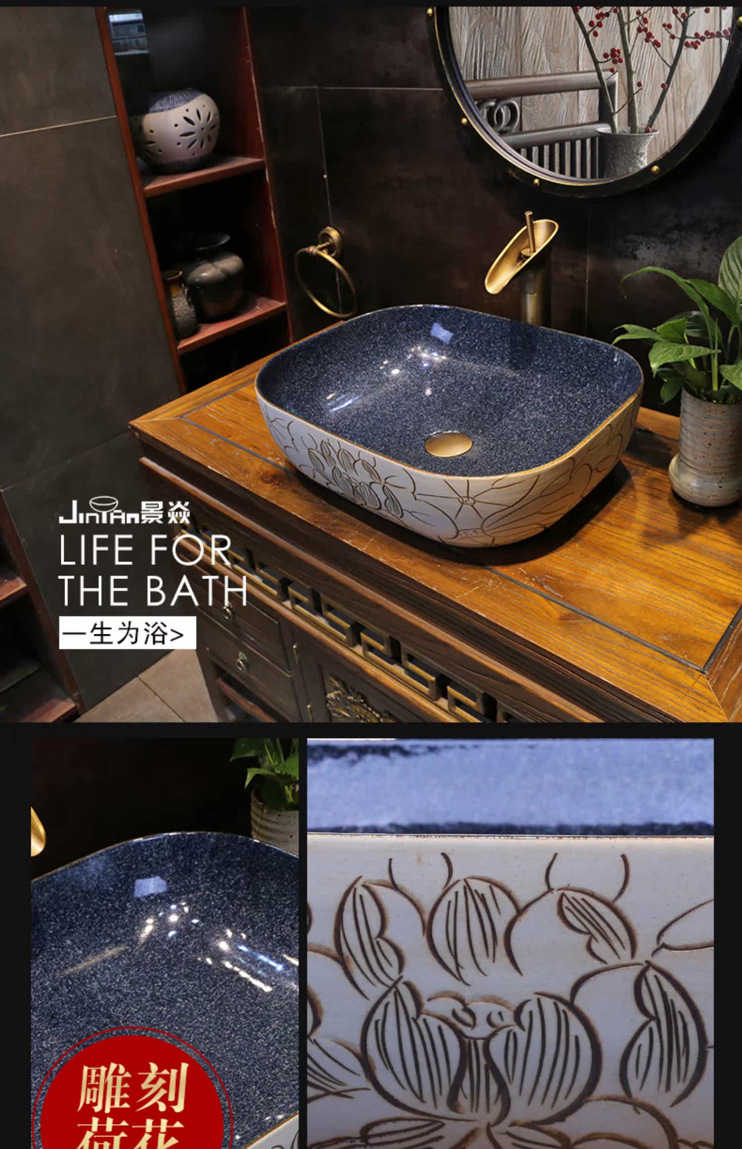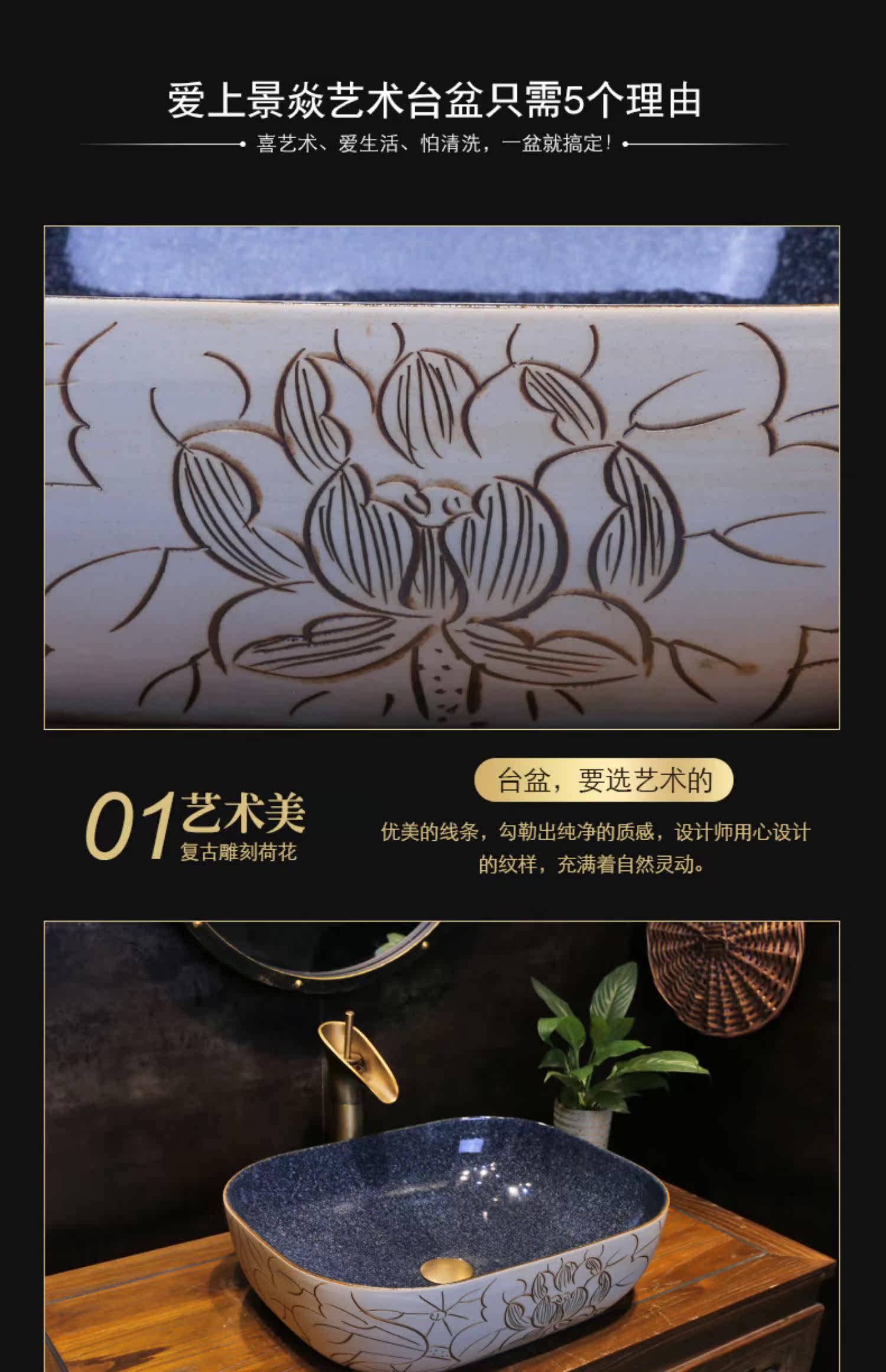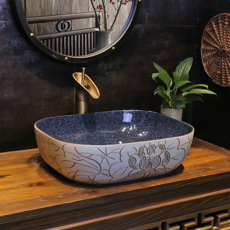 景焱 Новый китайский канал Lotus Art на бассейн -туалетной керамической домашней платформе умывальника на табличном туалетном бассейне.