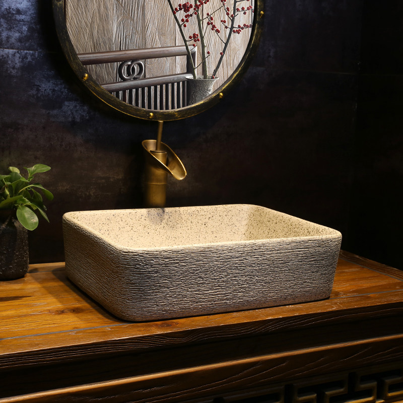 Антикварный матовый прямоугольный керамический гигиенический таз для домашнего использования