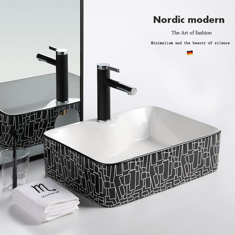 Квадратный черный гигиенический керамический таз для домашнего использования