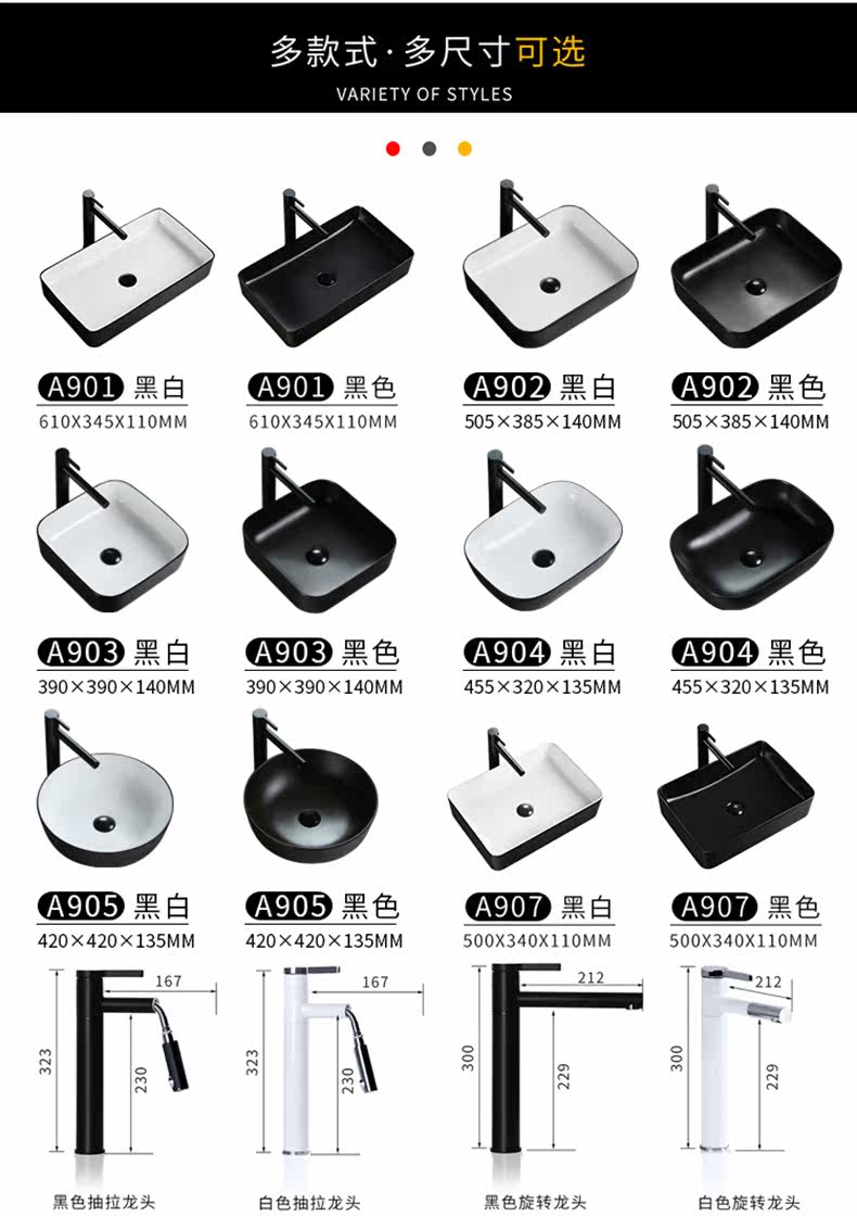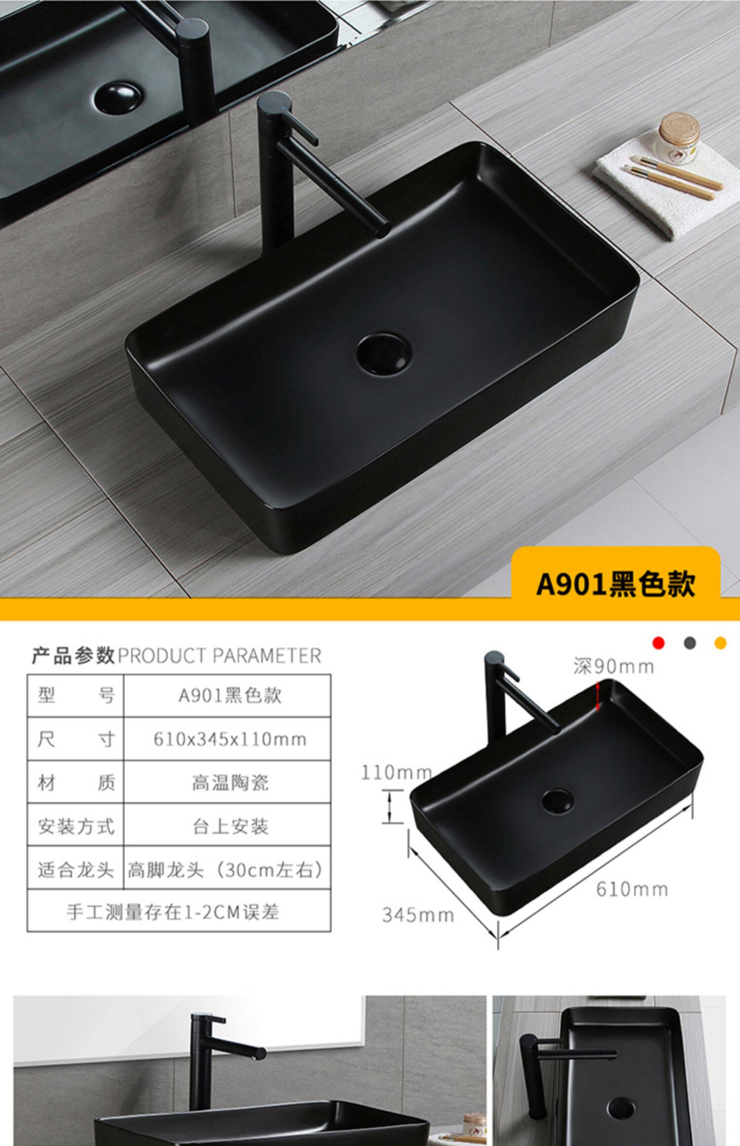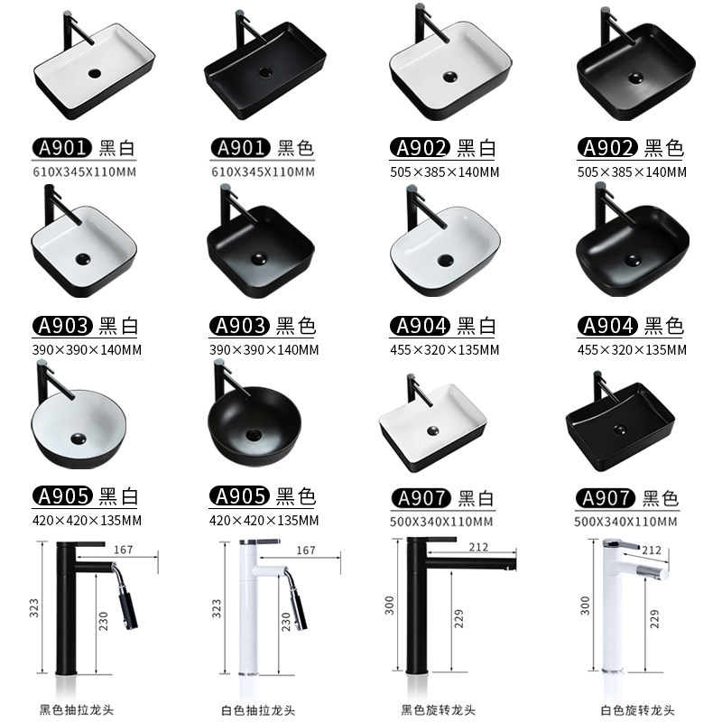 Квадратный черный белый керамический гигиенический современный таз для домашнего использования