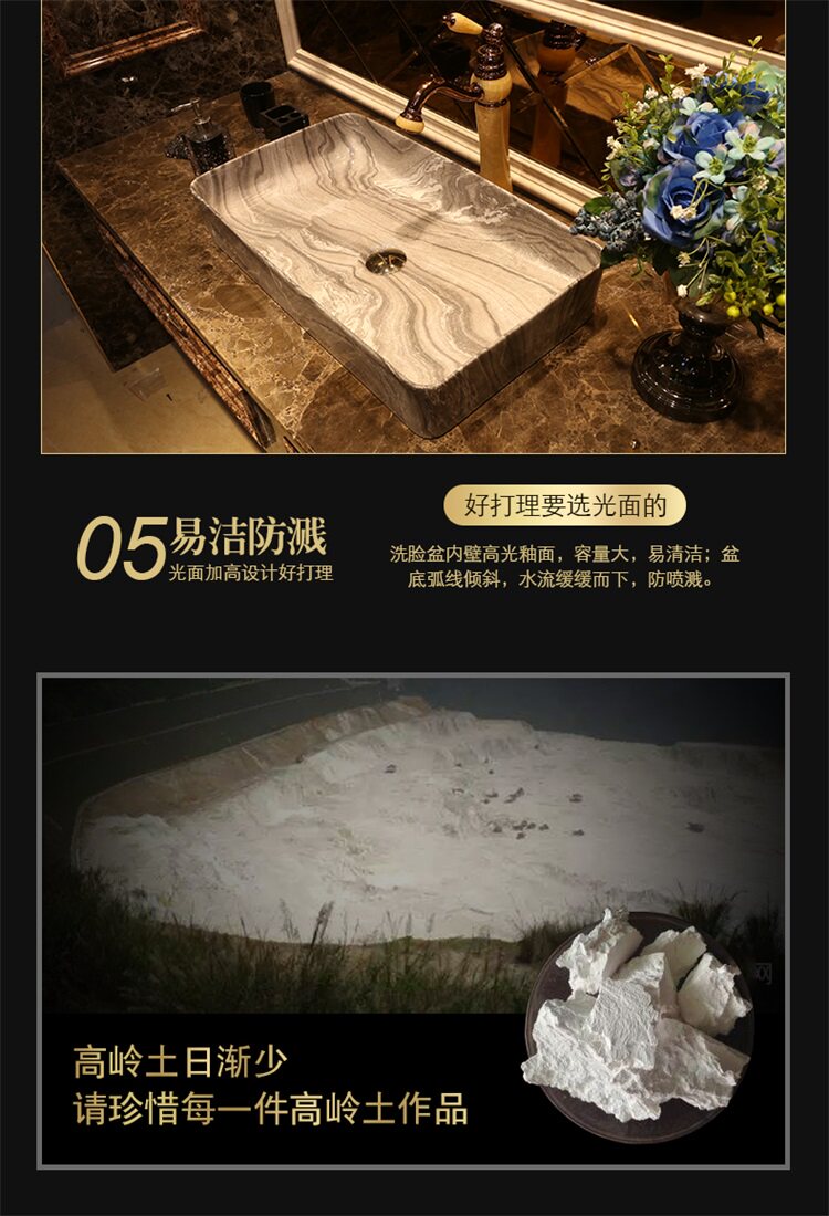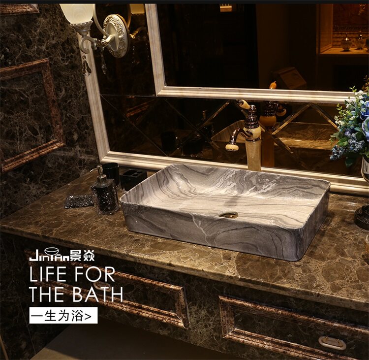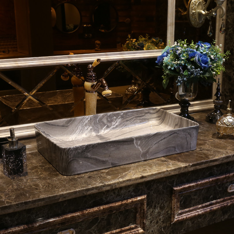 Мраморный прямоугольный керамический гигиенический таз