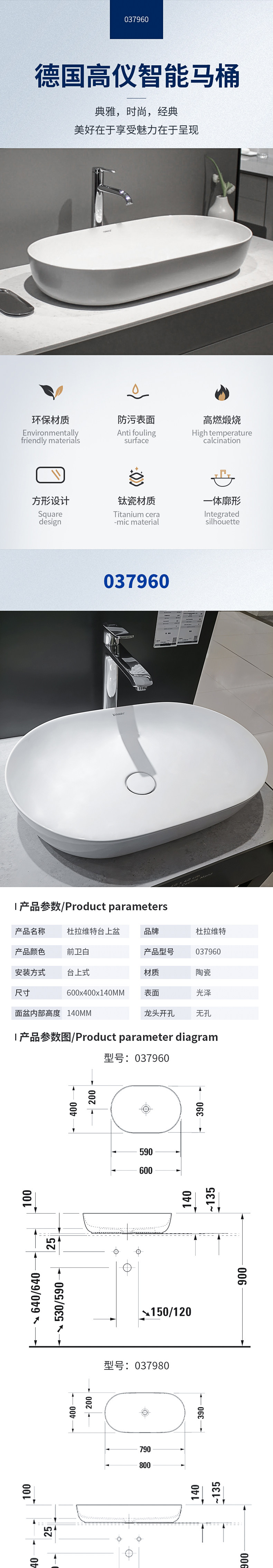 Немецкая оригинальная импортная раковина Duravit Luv на столешнице 037960 037980
