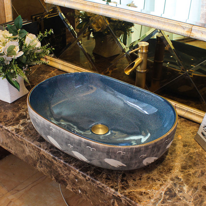 Мытья бассейн керамический дом для ванной комнаты для мытья стола для эллиптического искусства эллиптического искусства на бассейн -бассейнском бассейне в европейском стиле