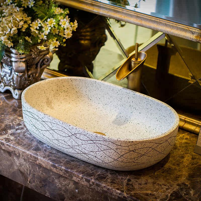 Настольная раковина, квадратная керамическая раковина в стиле ретро, балконная раковина, умывальник, домашний индивидуальный художественный умывальник, одинарная раковина