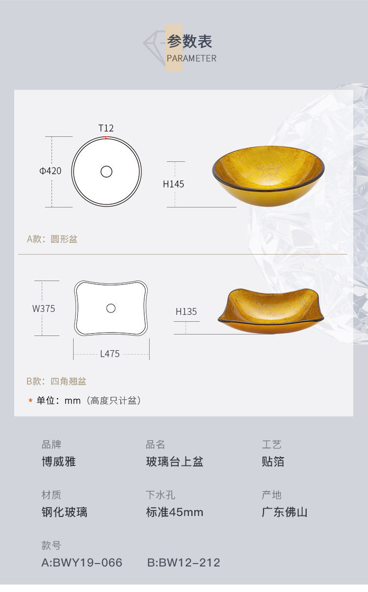 博威雅 Ванная комната для ванной комнаты стеклянную умываль