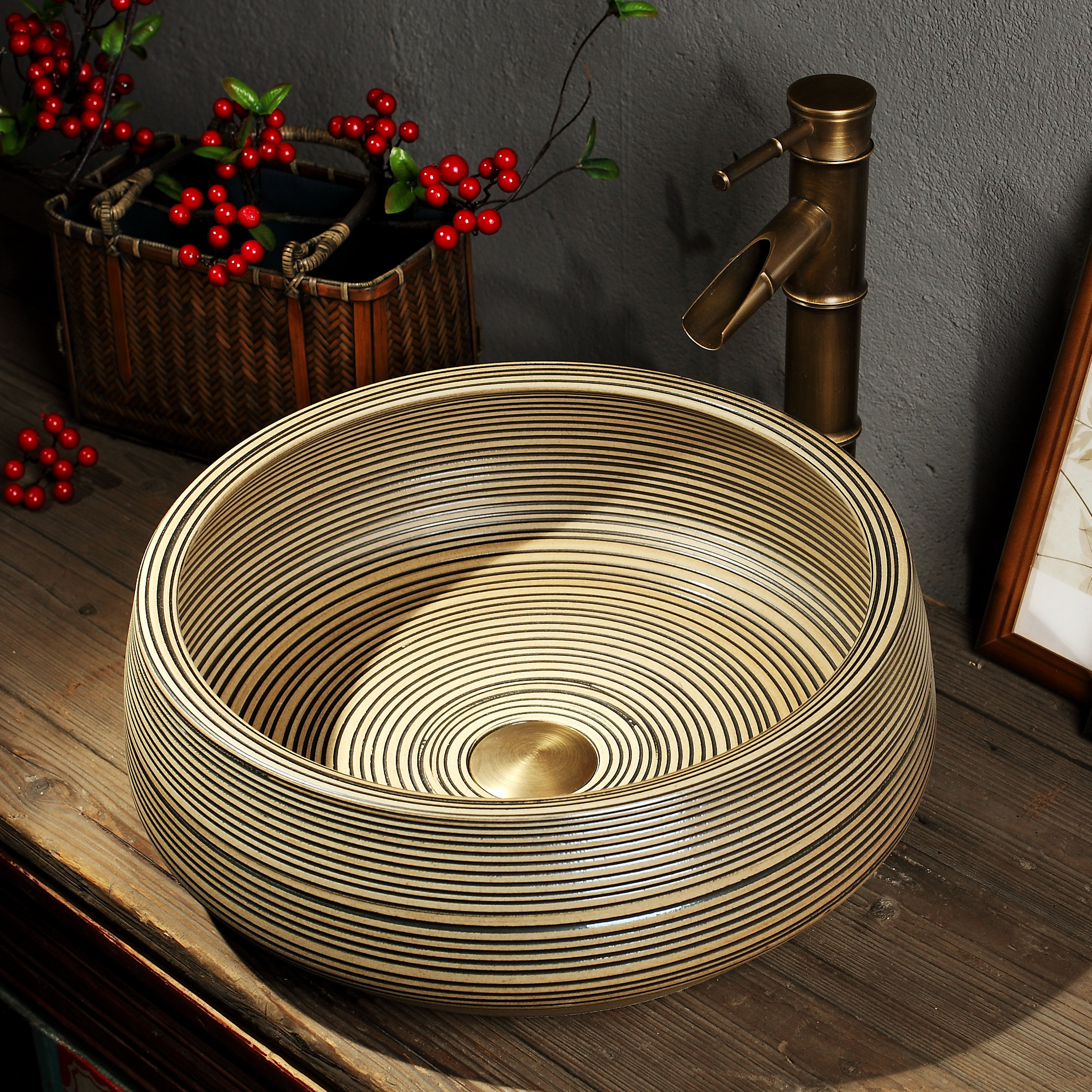Керамическое мытье рук бассейн для промывки лицера для мытья лица, балкон -ретро, бассейн круглый умывальник.