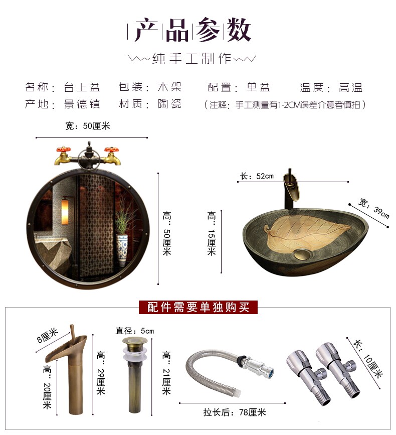 Маленькая керамическая санитарная лицевая бассейн бассейн Одинокий бассейн Ретро -бассейн дома творческая лапша мыть