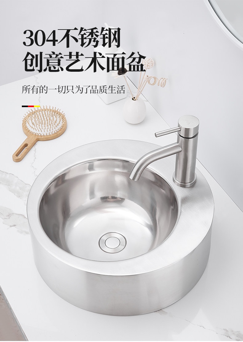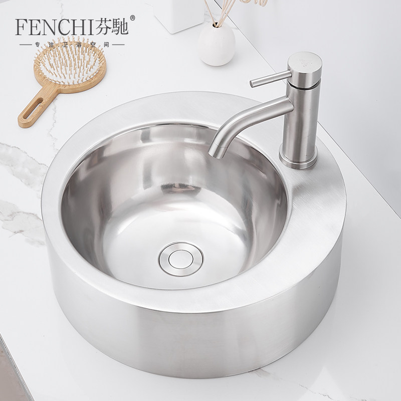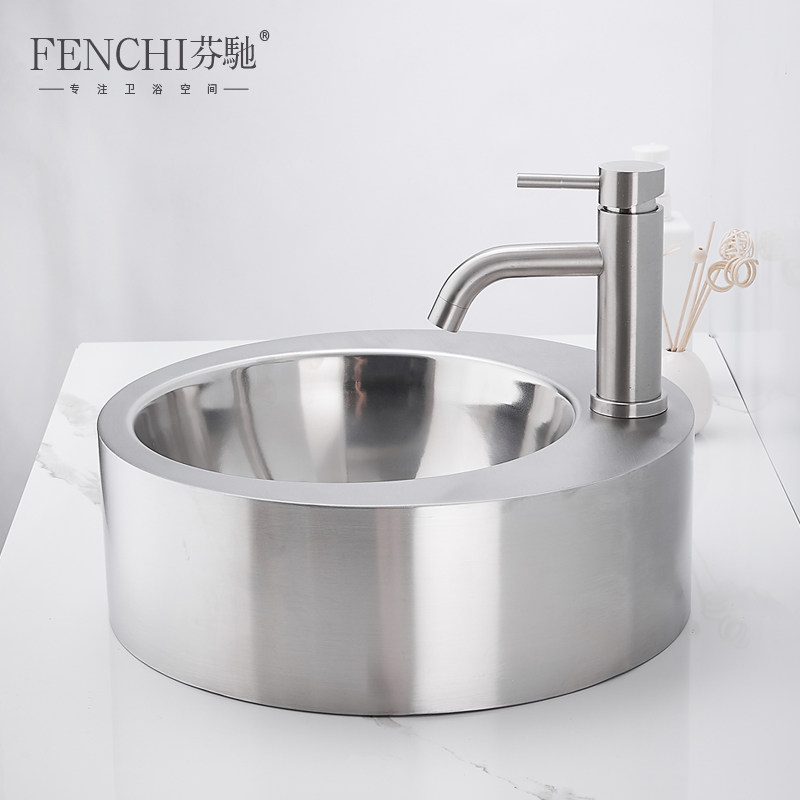 芬驰 304 нержавеющая сталь над столешницей, круглая раковина, креативная умывальник для ванной комнаты, балкон, умывальник для белья, бассейн