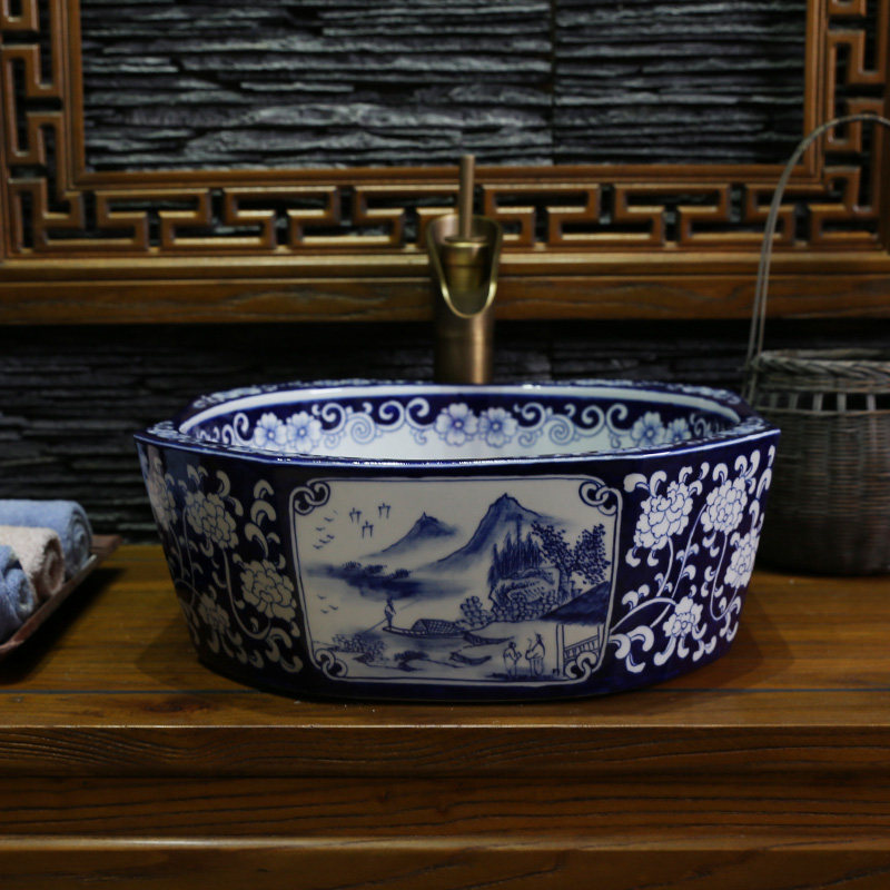 Jingye купание сине -белое фарфоровое террасовое горшок Творческая керамика ярмарка керамики