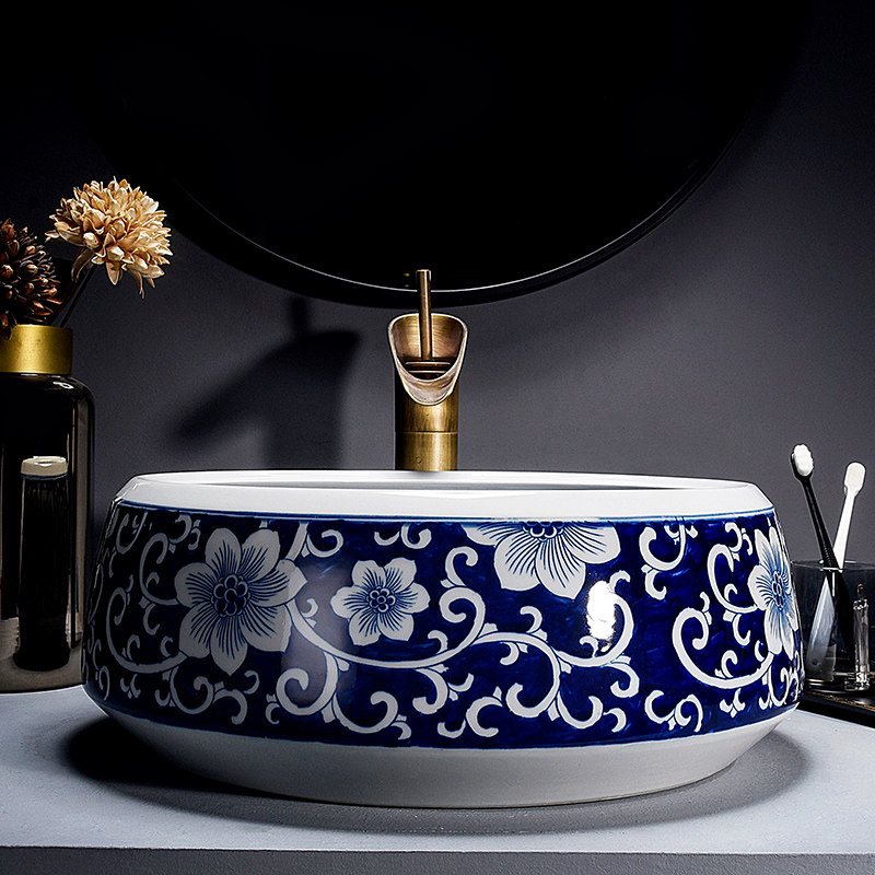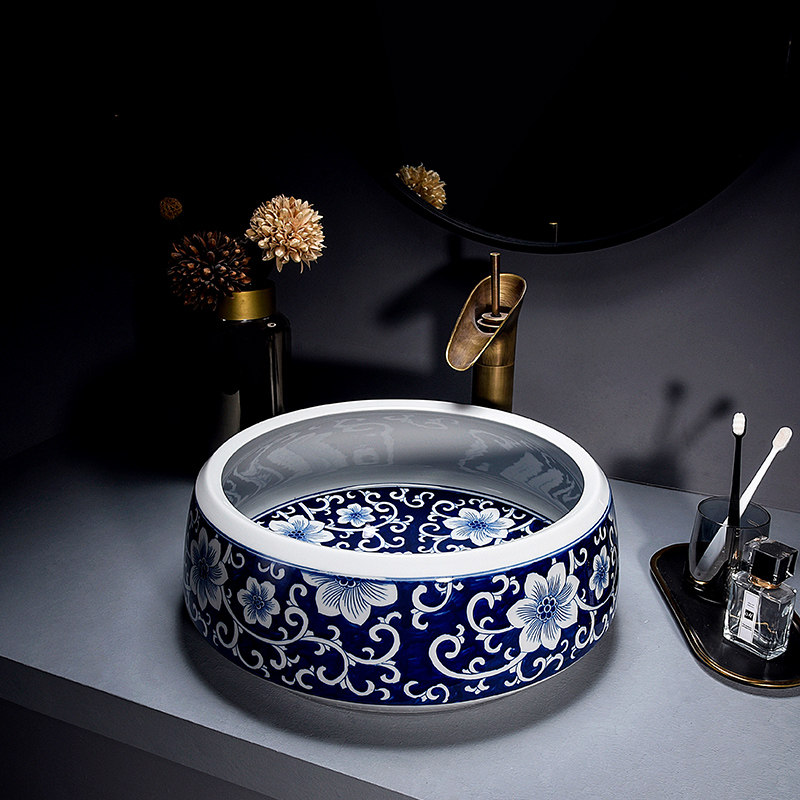 Сине-белый керамический гигиенический таз для домашнего использования, ручная роспись