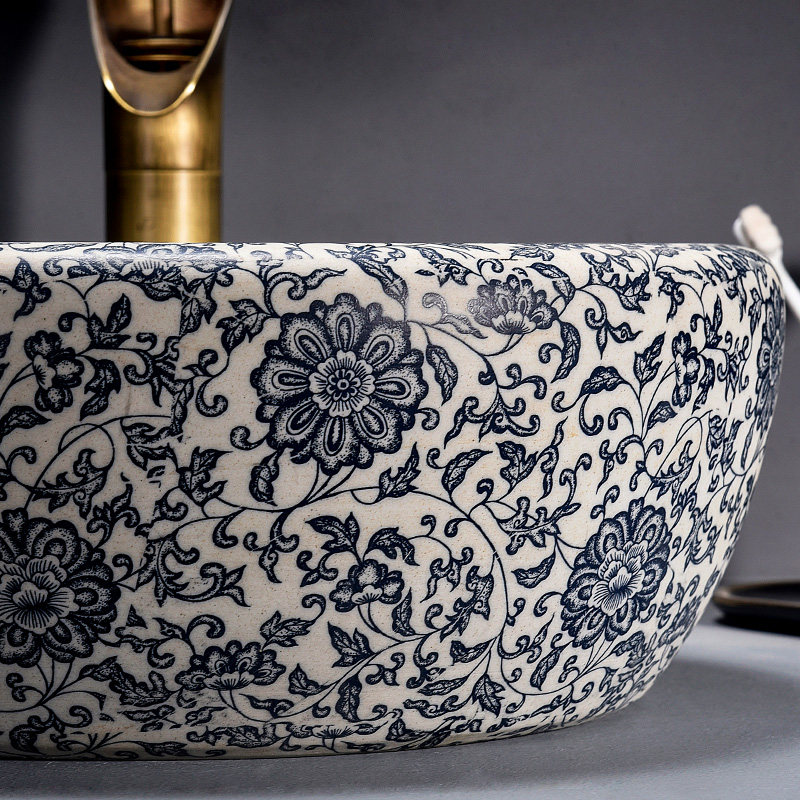 Сине -белая фарфоровая платформа на керамическом бассейне китайский ретро -арт -умывальник туалетный туалетный туалетный туалетный дом