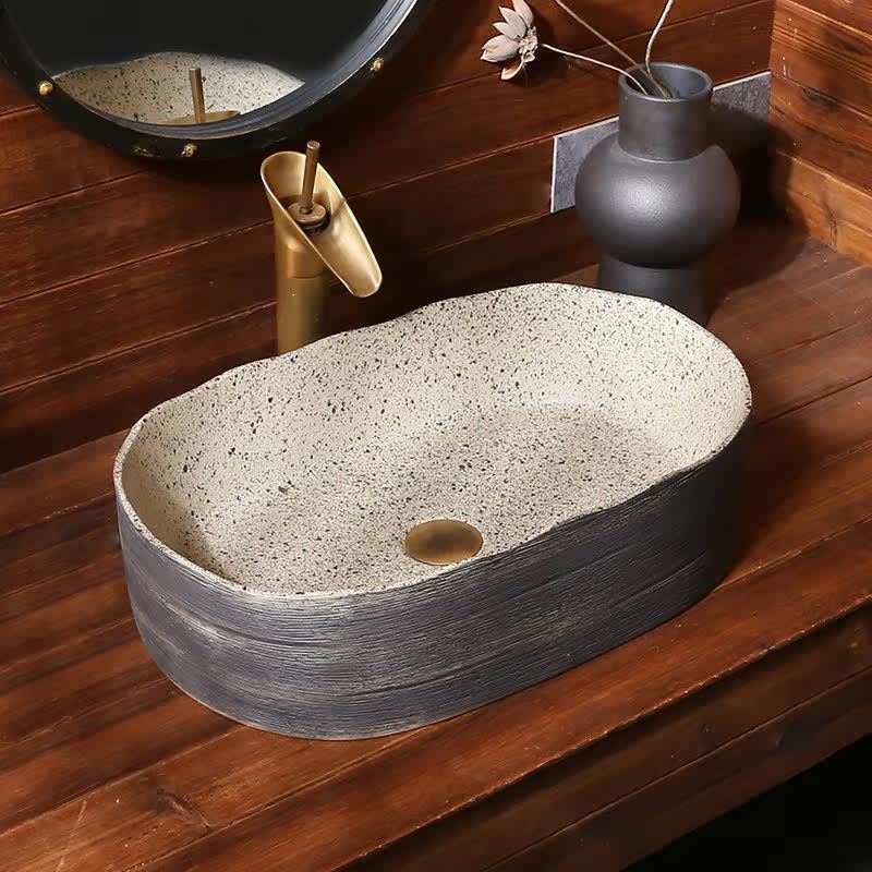 Керамическая платформа Jingdezhen на бассейне овальное искусство умывальника туалет туалет китайский ретро -балкон -балкон -туалет домашнее использование