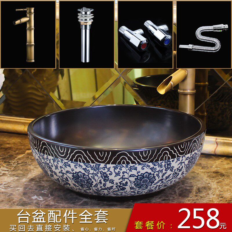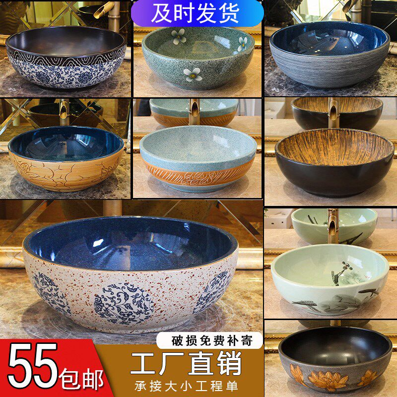 Одиночный бассейн керамический художественный туалетный туалетный кастрюль ретро для мытья бассейн круглый умывальник домашний туалет домашний туалет туалет