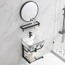 Небольшая квартира в сторону, водяная стиральная машина на сцене, керамика из верхнего таза, левая и правая поры, рука -рука, умывальника, Washbasin