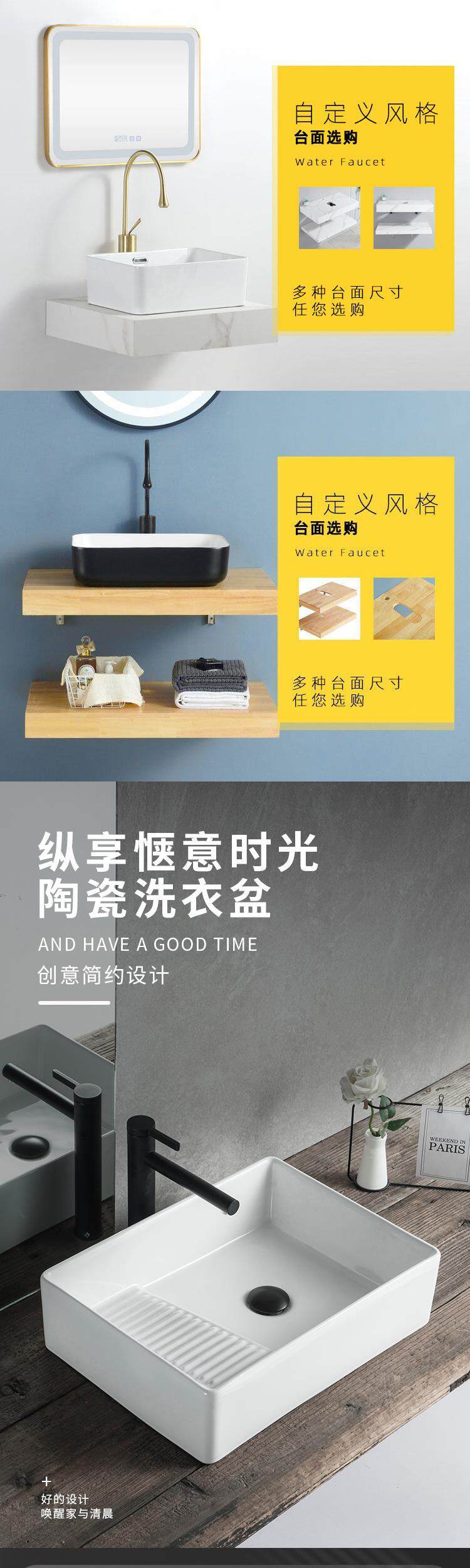 Промытый бассейн на боковой стороне бассейна бассейна на стороне горшка, боковой дренаж мытья базина, керамический балкон для мытья бассейна Одиночный бассейн