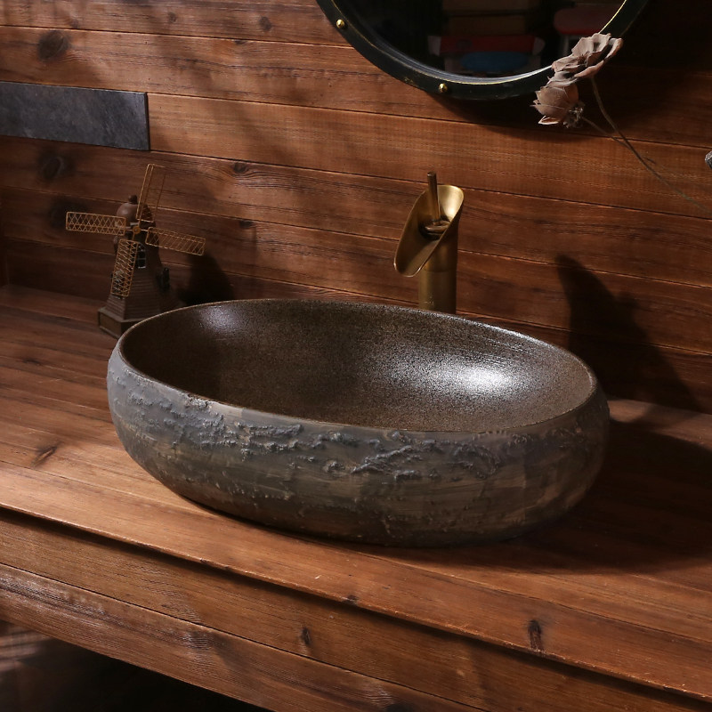 Ретро -метеоритный рисунок арт -платформа на бассейне Большая овальная керамическая мыть