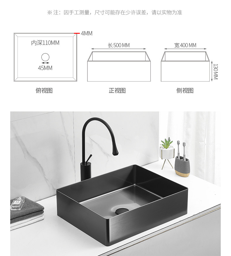 Черный прямоугольный гигиенический таз из нержавеющей стали для домашнего использования
