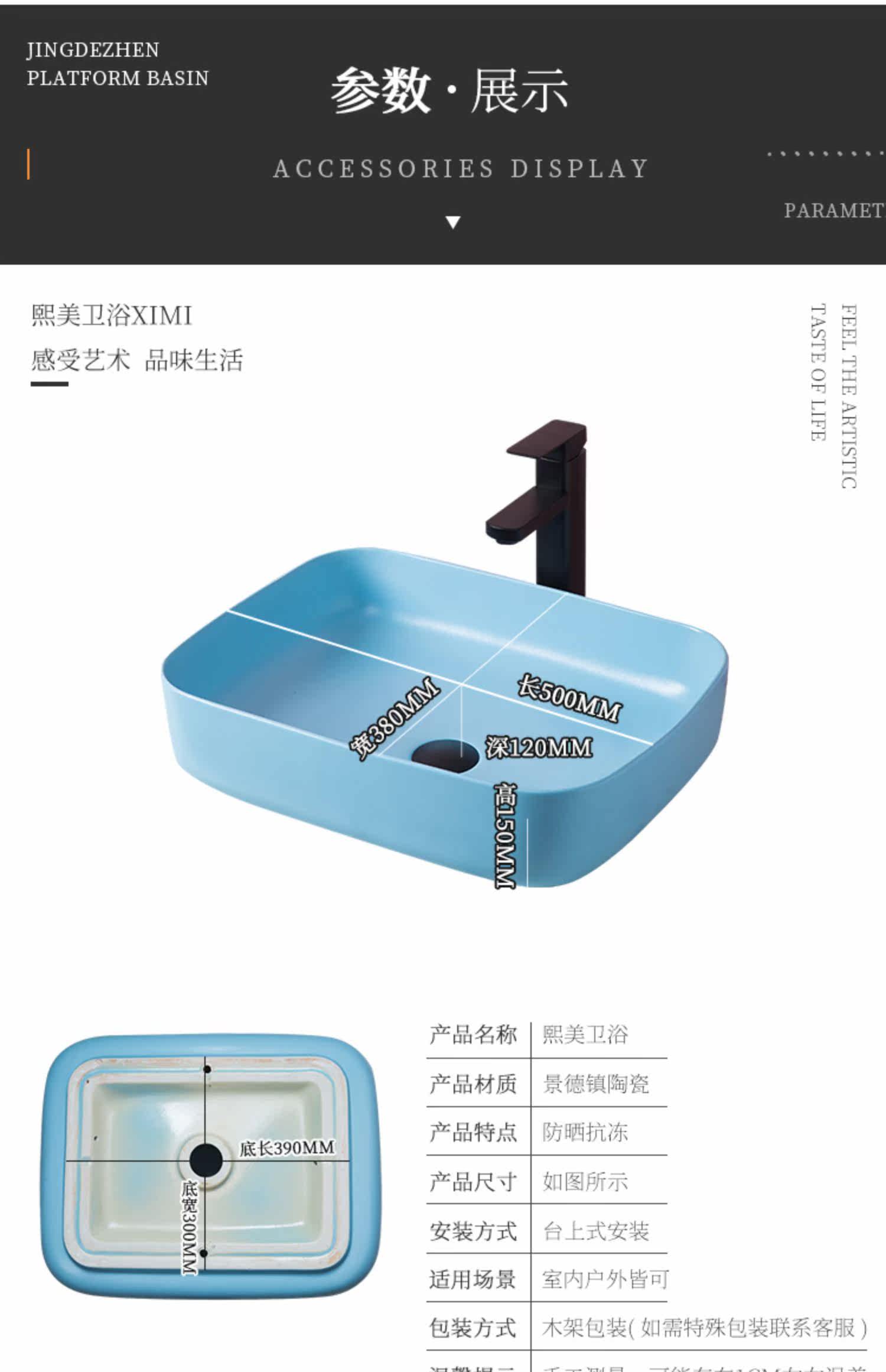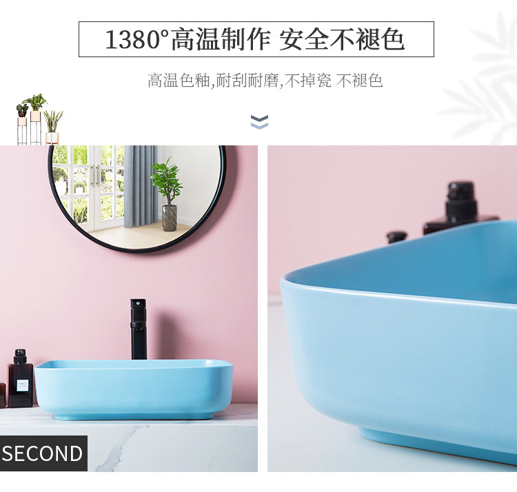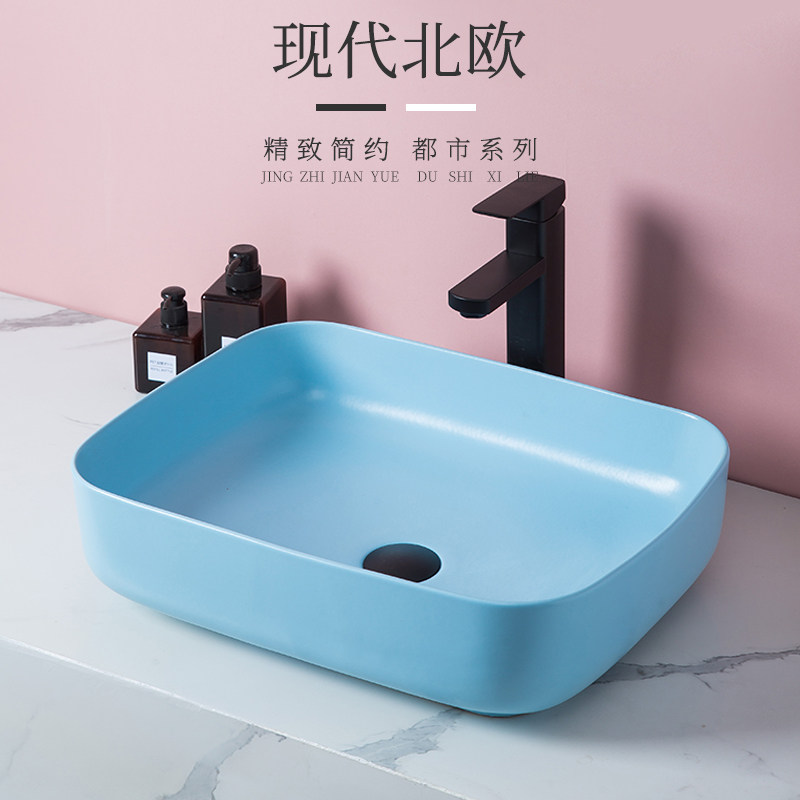 Прямоугольный керамический гигиенический синий ультратонкий таз
